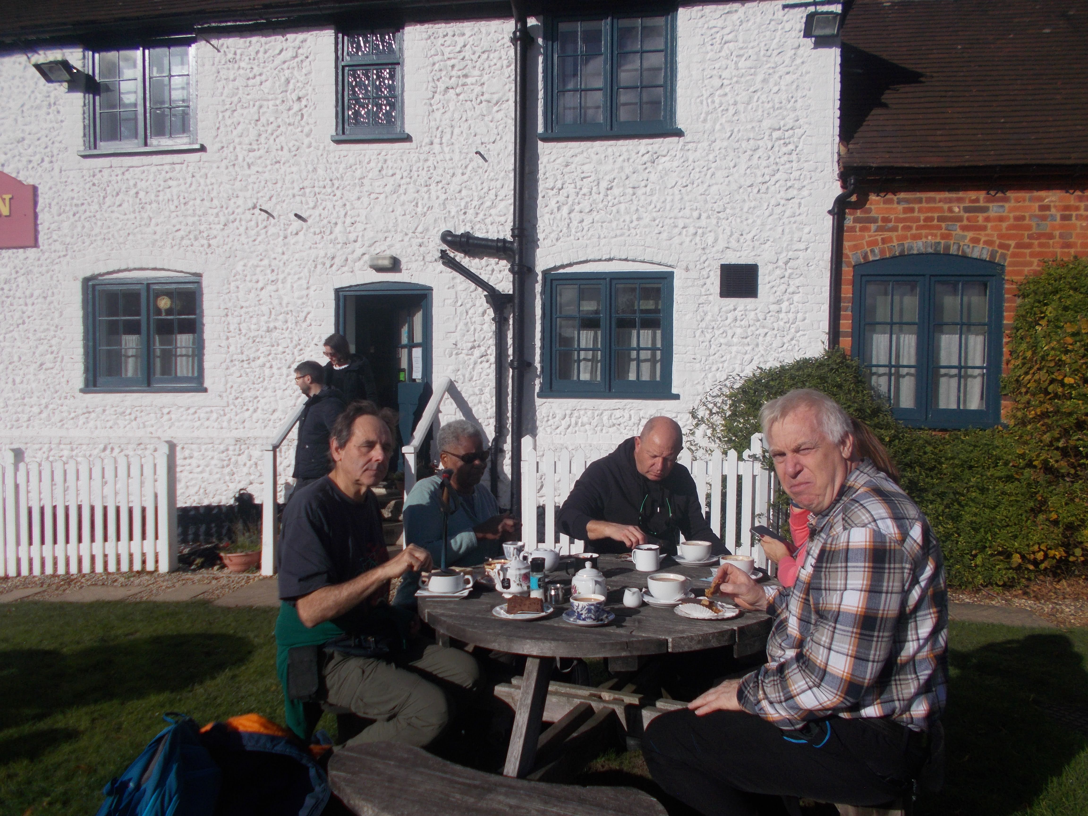 Our next stop was The Barn, where we eagerly placed our food and drink orders. The picnic benches outside were the perfect spot to enjoy our refreshments while soaking up the fresh air. And then, the surprise of freshly baked apple crumble - a heavenly treat that left everyone in high spirits. A massive thankyou to The Barn for their hospitality and generosity. Fully fuelled, we embarked on the final leg of our walk, following the Chiltern Way through Summerheath Wood. The autumnal colours were breathtaking, with the changing leaves creating a kaleidoscope of hues against the clear blue sky. We made a stop at The Chequers pub, famous for its appearances in Midsomer Murders, and enjoyed a leisurely drink in the rustic interior and lovely garden with stunning views. As we made our way back, the fresh air and scenic views left us feeling invigorated and refreshed. It was a fantastic day out, filled with great company, stunning scenery, and delicious food. A big thankyou to everyone who participated and made it such a special day.
