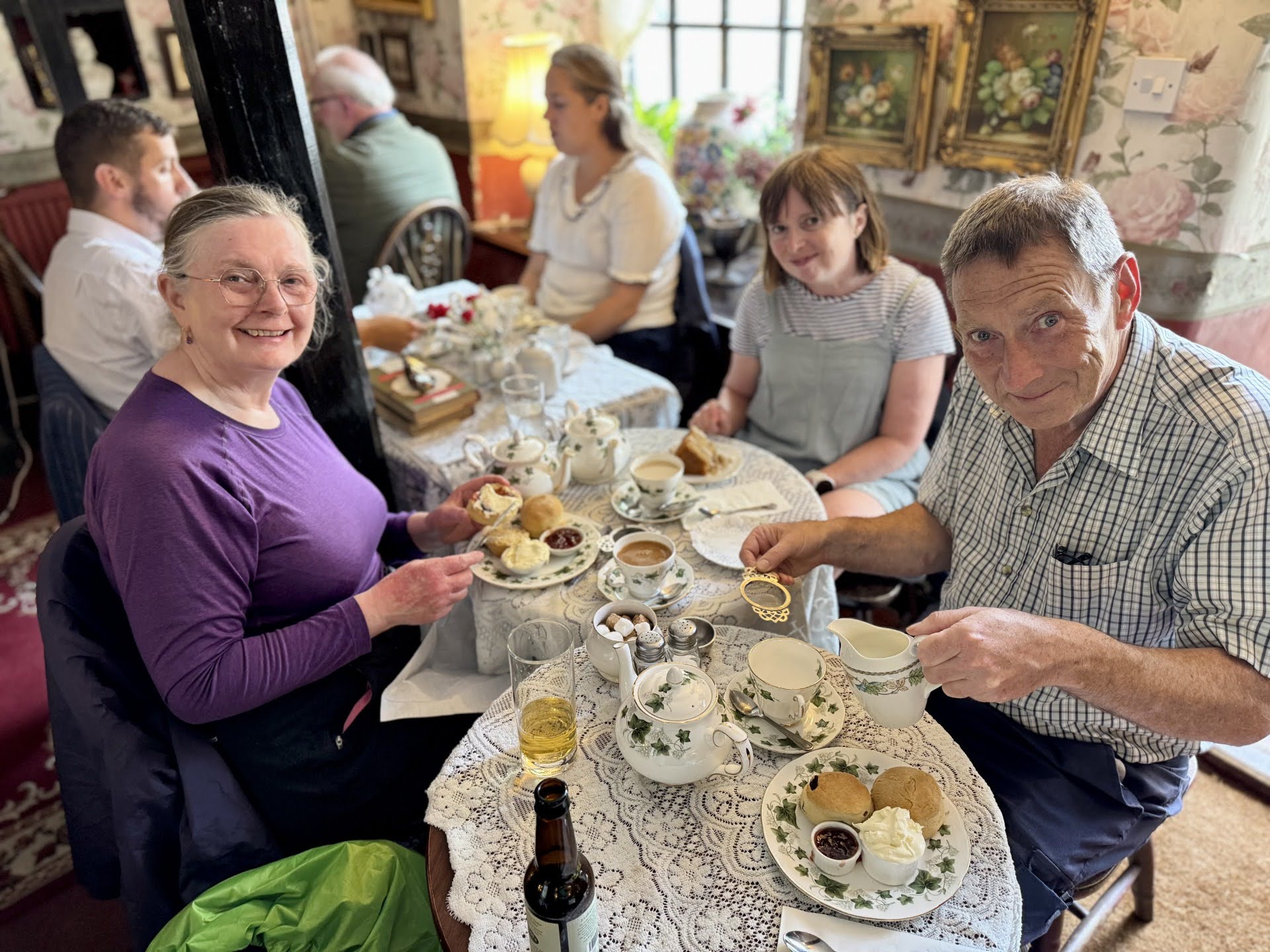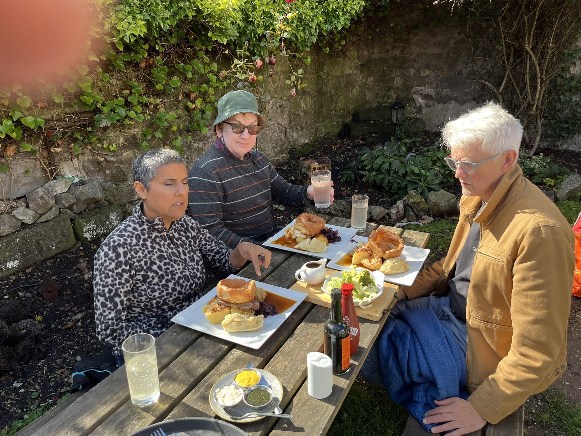 Sunday saw the sun rising over the valley with the autumn sound of mellow fruitfulness. The acorns landing on the dewy lawn, the skylark greeting the dawn and Con enjoying his first gasper of the day. We strolled down to Cromford village, another model village built to house the huge workforce of Arkwright's cotton mill. We explored Arkwright's Mill, created in 1771 as the world's first water-powered factory. The venue has many exhibitions showing the evolution of the industrial revolution. We visited the Cromford Canal where the cotton arrived in barges from Brazil and India. We took over Arkwright's Café before heading along to Scarthins Bookshop. This is another fascinating independent bookshop in a four-storey manor with 100,000 books and a hidden café. Each floor has multiple rooms and alcoves dedicated to different themes; Neil found the music room and played a song on the ukulele whilst Nick H found some treasures in the Buddhist Room. Tracy and Soraya then led us to the Boot Inn for a sumptuous Sunday Roast in the sun-filled beer garden after another great cycling holiday in the Peak District.