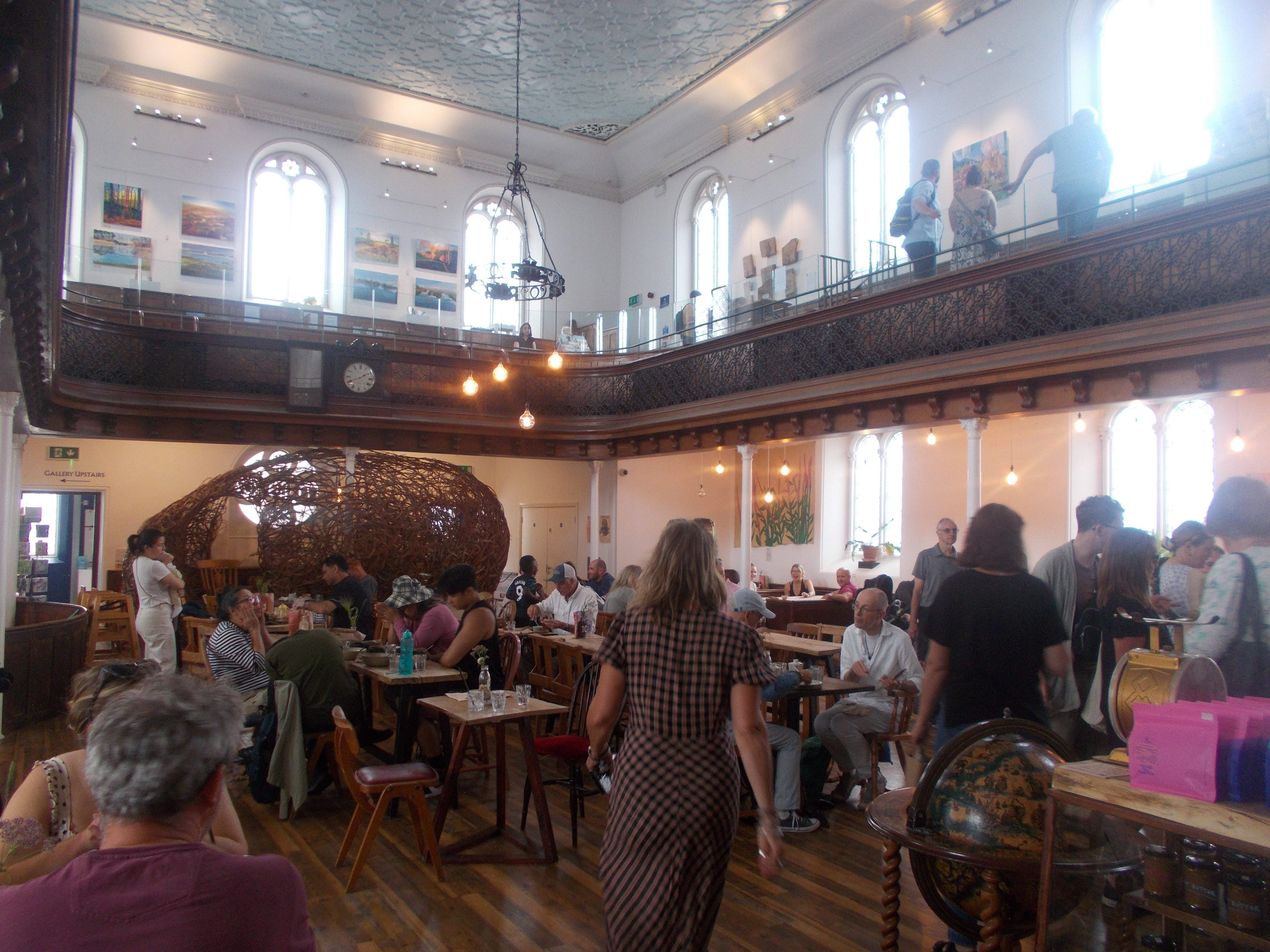 Twelve eager amblers met at Tide Tables on another warm and sunny Sunday morning. After jam doughnuts galore we set off on the Thames Path towards Old Isleworth, detouring to the new Virginia Woolf statue on route. Canadian geese were in abundance by the Old Apprentice Inn. We admired the Strawberry Hill Gothic mansions by the church. Into Syon Park for our essential photo shoot in front of the Duke of Northumberland's London residence. Kevin directed us to the artisan bakers stall, Joan and Dee helping themselves to jumbo pastries. Then we arrived at Brentford Canalside and the start of the Creative Mile Art Festival. This arts festival encompasses all of Brentford from the Grand Union Canal to Kew Bridge and the transformed Thameside riverfront. We visited several venues including a former convent within the Georgian mansions of the Butts. Then we arrived at St Paul's Church which is a typical stone-built Victorian church on the outside, whereas inside it is a neon-lit community church (basketball hoop and mezzanine lounge areas) with its own café.