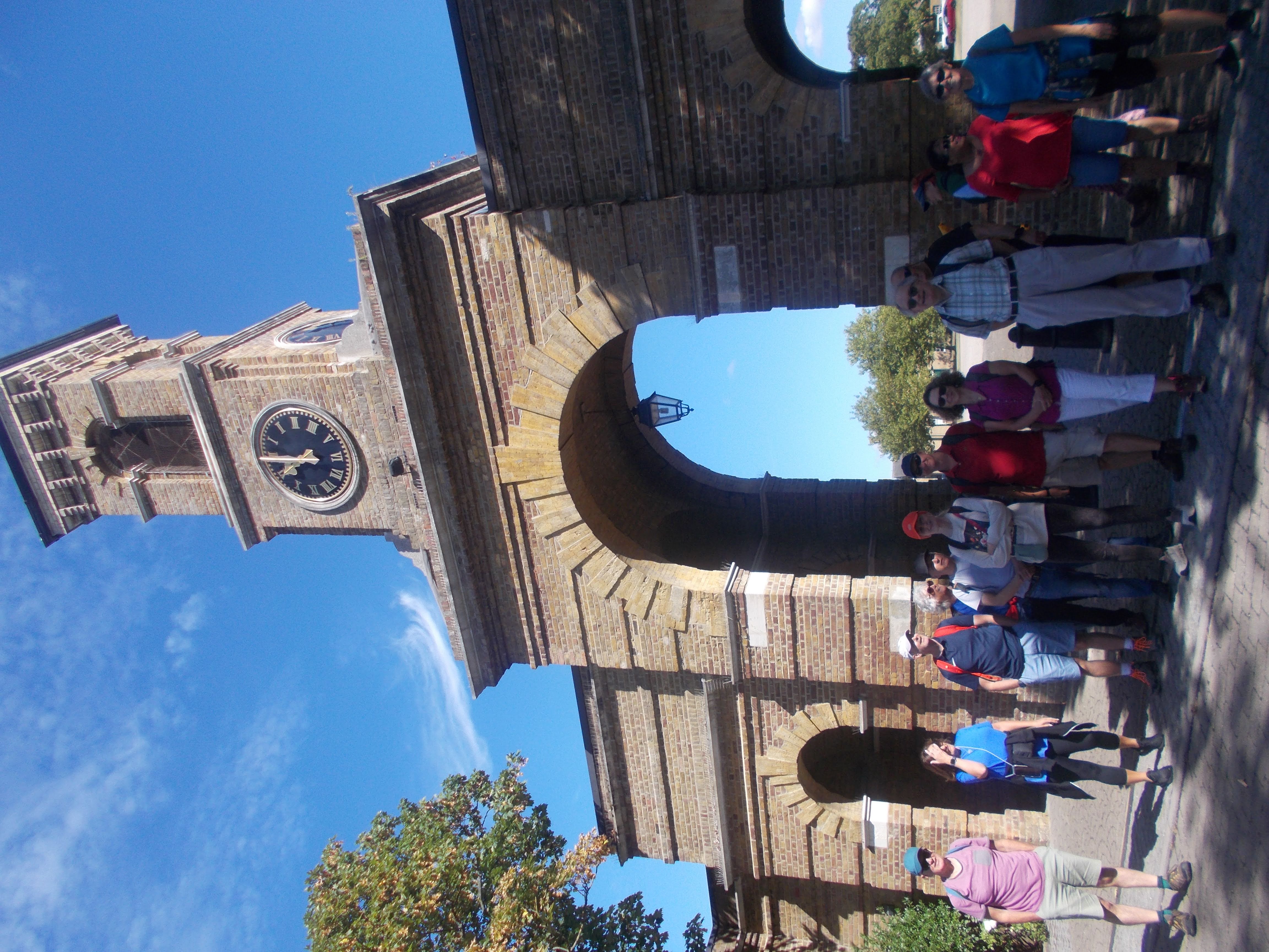 On Saturday we were up with the larks for the circumnavigation of the city on the city walls. York has almost its entire medieval walls intact, and the 3-mile circuit can be walked along the ramparts. As we stepped lively between the towers and gateways, we noticed lots of the towers had been repurposed as cafes. After exploring the Clifford Tower (remains of York Castle) we continued along the walls until Walmgate Bar where we happened upon a hidden tea shop within the Elizabethan tower. The former guard rooms now contain cosy sofas and artwork for a very different café setting. As we re-entered the old city, Judith befriended some Norse warriors, "I say you chaps, can one join in?". Judith was welcomed within the horned helmets and shields as they marched onwards. At the Merchant Adventurers Hall (original livery mansion from 14th century) we encountered more Vikings. We strolled through the Shambles (medieval alley with unique shopfronts) and made it to the Minster Square for the Viking Parade. Hundreds of lavishly attired Vikings assembled and marched forth across the city. Our next visit was to York Minster. This is the largest Gothic cathedral in northern Europe and has half the remaining medieval stained glass left in Britain. The guide explained the fascinating history of the Minster before some began the ascent of the tower. We were rewarded with stunning views over the entire Vale of York. We stopped for Parkin cake at the Minster Refectory before the majority returned to the hostel. Diane arranged an evening meal at the Door Mouse where Kevin and Malcolm enjoyed the traditional Yorkshire delicacy of the roast dinner inside a giant Yorkshire pudding. Just time to see the dazzling light show beamed on the main wall of the Minster and some live music at the Shambles micro-brewery pub.
