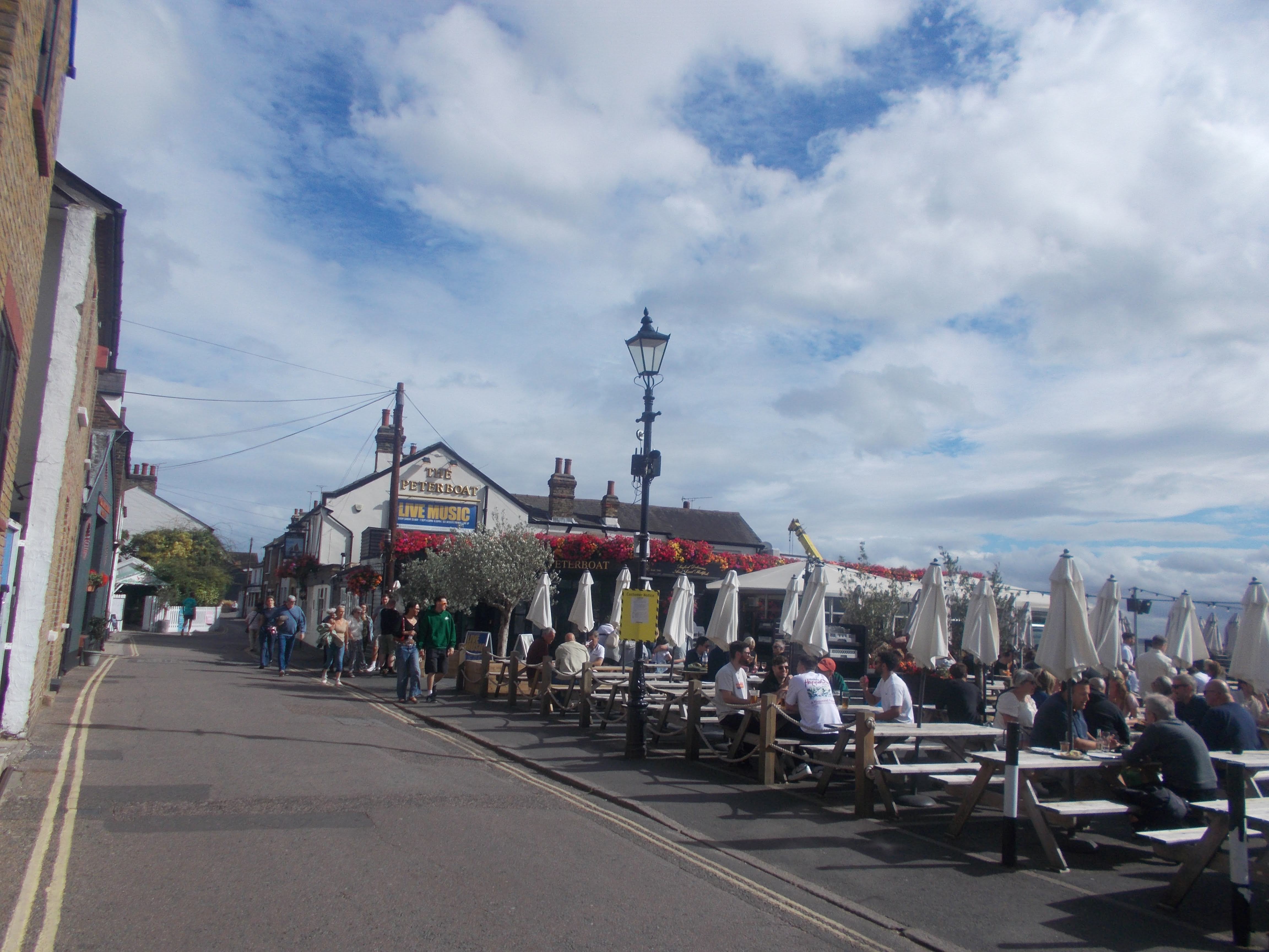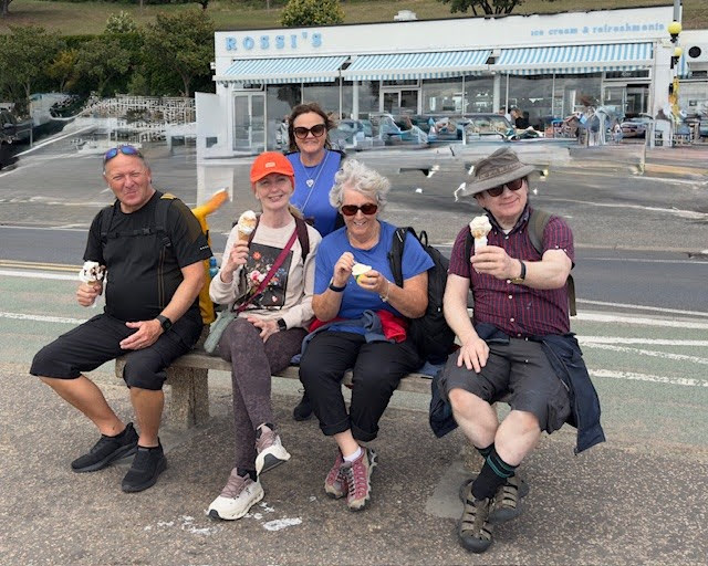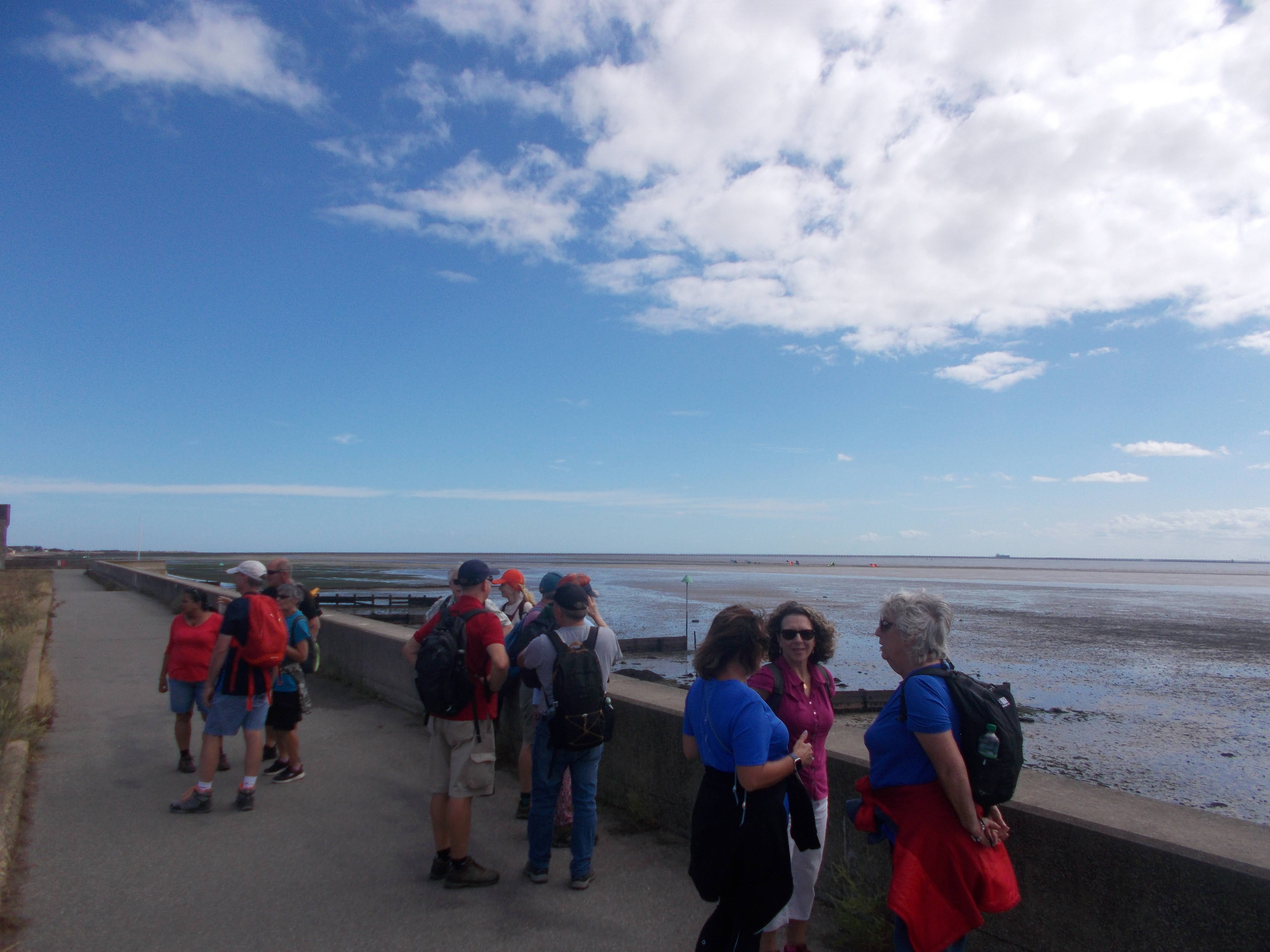 11 people were welcomed at Shoeburyness Station on a beautiful sunny day to start an adventure along the coast to Leigh to Sea. We saw the many fortifications of the naval base at Shoeburyness, now converted to apartments with sea views, and we discussed the history that developed to what it is now. We passed the nature reserves on the coast, home to many migrating birds, with lots of photos taken of the beautiful coastline. Then we arrived at Southend's 'Golden Mile' and pier after stopping on route for an ice cream break at the original Rossi's Ice Cream Shop, adults reverting to children enjoying the deli's ice cream. Some members spotted a driver in distress as their car had broken down in the middle of the road and went to their aid to help push the car to safety.