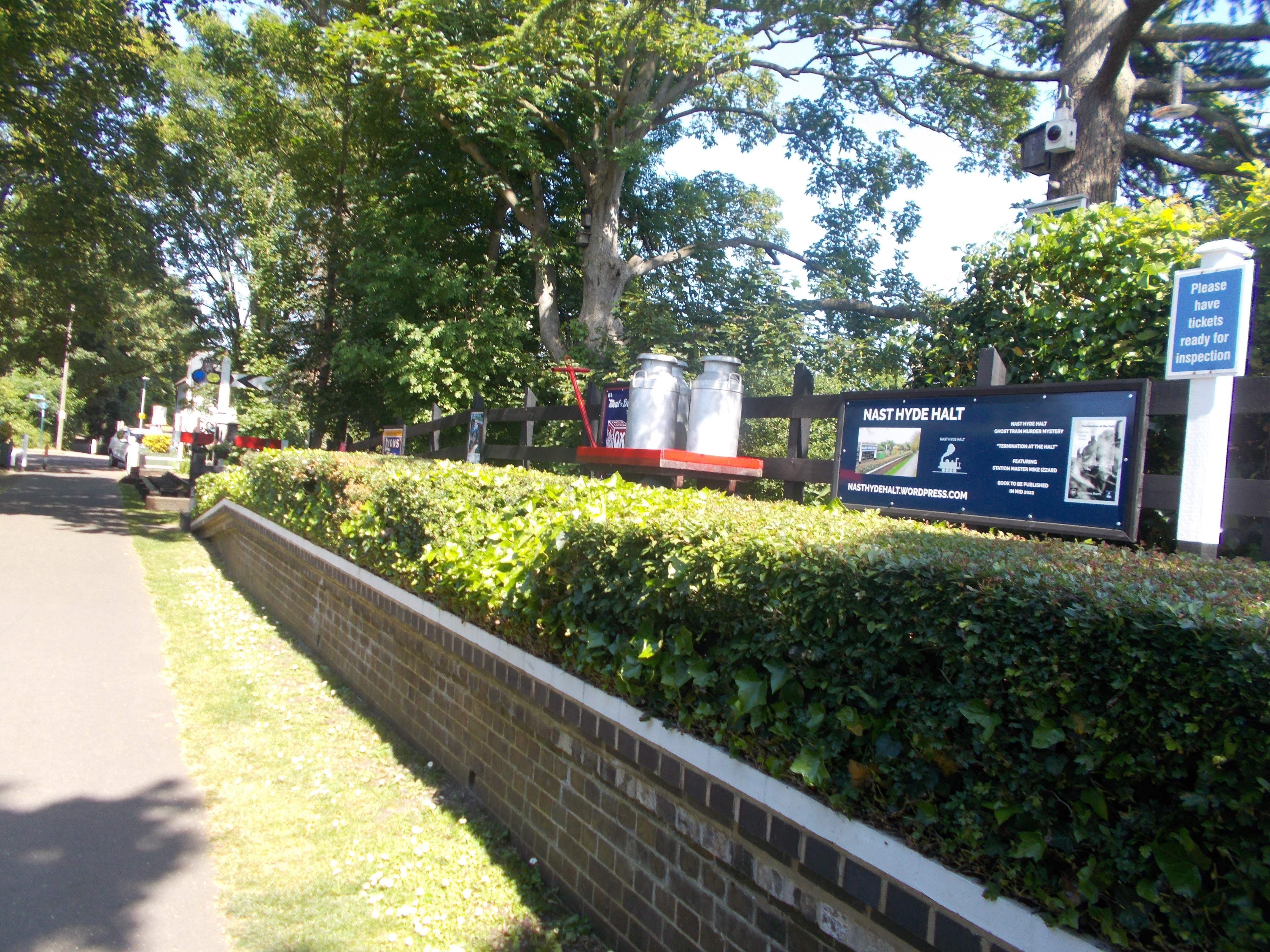 Reaching the outskirts of St Albans we changed direction to join the Alban Way. This runs along a former railway line from St Albans to Hatfield. The trail has been created by Sustrans, with information boards on route showing the history of the railway and the industry and villages served by it. There are several former stations on route which have been partly restored with artwork displayed. We continued east in the sunshine not expecting any refreshments on route (several cycle rides before on the Alban Way) when a gate opened and we rejoiced at the sight of a hidden Morrisons supermarket. "Doughnuts for all" said Soraya as we all tucked in. At Nast Hyde Station, Postman Mike has created an amazing collection of railway infrastructure, vintage posters and information boards. The walk ended at the Art Deco Comet House, built to commemorate the De Havilland Comet built at the works nearby.