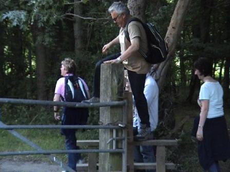 We joined the towpath with several large barges moored to the side, one of which appeared to be doing a roaring trade selling pots of honey. Cathy fell in love with the idea of a barge holiday and started planning who in the group to invite according to suitability for getting on. After about � mile a diversion had to be made due to the towpath being blocked for 'maintenance'. Quite by chance another group of walkers (about 30) training in readiness for a 75 miles walk over 3 days, for The London Hospice later in the year, arrived shortly after us and directed us around the sectioned off towpath and brought us out on at Denham lock about � a mile further on.