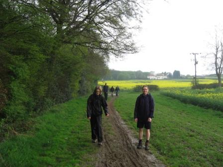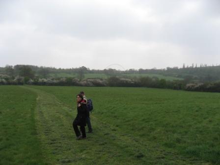 The walk now headed east to the Lee and lunch. We stopped at a public house that is still open (3 out of 5 on this walk were now closed). I had a nice couple of pints of real ale - VERY TASTY! We then moved north on the Ridgeway, survived an April shower on the way to Lee Gate, then on to Concord House, Boswells Farm then to finish at Wendover.