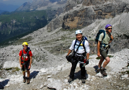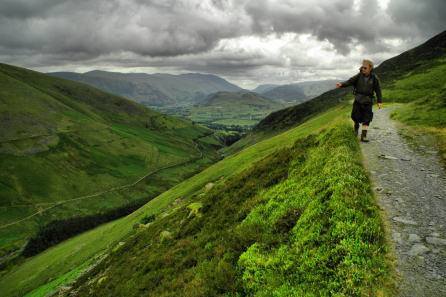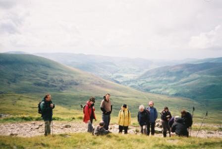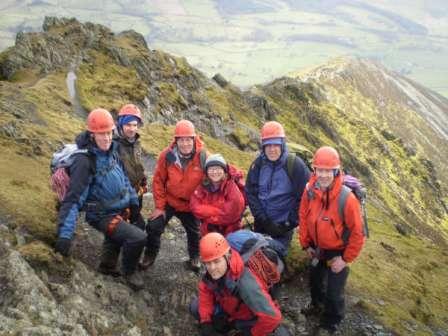 The Sunday morning began with rain again, but thankfully cleared later for some good pictures. The day included rope instruction, knots and rope use. This was followed by a walk/scramble up Blencathra via Halls Fell. http://www.lakedistrictwalks.com/hall1q.html. This web site details the walk exactly - http://www.lakedistrictwalks.com/blenhf.html. Graham and Paul (2) were roped together and also Jim and Mike in pairs, whilst the others walking the main path which was a strenuous route. In addition to the rope work - tying on, belaying and walking whilst roped: a short improvised abseil was carried out which was interesting and all good fun.