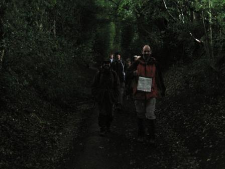 On Saturday the eight of us who came - Anneke, Caroline, Claire, Nicky, and David, Jim, Marcellus and me - headed south towards the villages of Wentnor and Asterton and then our first climb up to the summit of Long Mynd (517 metres). Nicky led the walk to the summit. Just before 1pm four departed and headed down and north-west back toward Bridges. The rest of us headed south-east down the other side of the Mynd following the Ashes Hollow stream in a valley to Little Stretton before heading north through woods for a late lunch in Church Stretton about 3pm. Our route home was almost as beautiful, another climb back up the Mynd along valley path with stream, this time the Carding Mill. Our ascent was much quicker than expected; we reached the summit around 4:15pm at the start of dusk, so still plenty of light. And for me at least, the best bit was the dusk walk along the Mynd, distant views of rolling terrain with specks of light from erratic and sparse farms and houses, and the walk back down the other side to Bridges in decreasing light. Around 14 miles in my view, others felt it was 20.