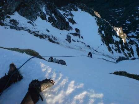 Day 2 - Rope work involving pitching, moving together, short roping and abseiling over snow, ice and rock.