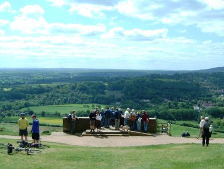 We started uphill to the South African war memorial on top of Coombe Hill (260m the high point), with good views including Chequers. We then moved south through woodland to Dunsmore and on to Little Hampden. We met the local Vicar of Dibley and parishoners in the tiny 13th century church - this had cool medieval murals too.