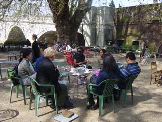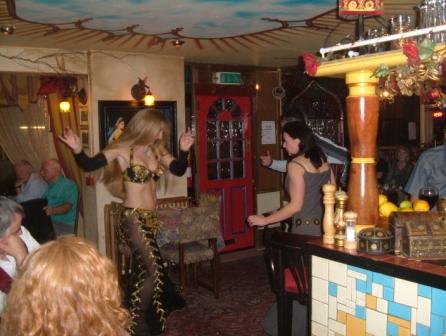 Saturday dawned bright and sunny. Eleven members sprang into action to capture the 9.10 train to Amberley, although Jeff sadly missed out on the reduced train ticket due to not being around for the headcount, and it being too early for Jan to count properly. A similar group of 11 members armed with children in buggies had a convoy around a 7mile route over the south downs, starting at a more civilised 10am. The Amberley route took in some stunning scenery and lasted about ten miles, ending at Arundel Castle - the planned route was originally 11.7miles but Brian used his joker card and without consultation bypassed the lunchtime pub break on the grounds that he didn't like the sound of the pub. He made up for his dictate by taking us to a lovely pub which served Badger (ale) by the river. A similarly delicious cream tea was provided by Belinda's, and Damien enjoyed initiation into the ritual of stuffing yourself silly with clotted cream. After a root around the castle, we pelted for the last train back to the hostel (Jeff arriving insouciant at the last minute) and to prepare for the Turkish Meal. To celebrate Pete D's birthday, eleven of us visited the Silk Road restaurant. We were treated by the sight of Pete showing an internationally renowned belly dancer how a real belly dance should be (twice). General cavorting took place afterwards to the sounds of the seventies all night long.