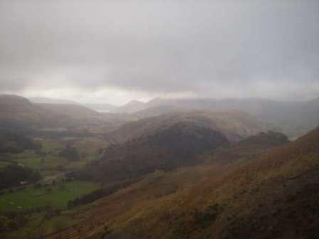 Pausing at the top of Park Lane to admire a fabulous view down to the lakes in the misty sunlight, then the steep descent to the Coy Carp where we stopped for lunch.