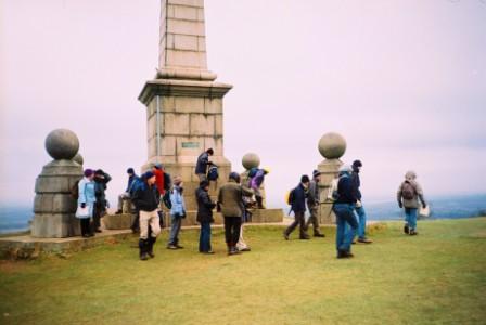 With a party of HAWOGers already off in Scotland, I was not sure how many people to expect at this year's Yuletide walk, however we were pleasantly surprised when 25 hardy souls turned out on the day. We were greeted by a dry and frosty morn, though the early sunshine had deserted us before we even got started. Initially we headed up from Wendover Dean to join the South Bucks Way, hotly pursued by latecomer Mary, who could be seen puffing up the hill after us, scarlet in hue. Resisting the temptation to hide in the woods, we headed on past Dunsmore and Litton's Wood before rejoining the South Bucks Way and heading up the icy track to Coombe Hill. This provided spectacular views over the Three Hundreds of Aylesbury. On the top is a monument to those who fell in the Boer War, which proved to be a lifesaver for us (along with Mike D's hip flask) as we sheltered from the icy wind that was whistling over this high ground.