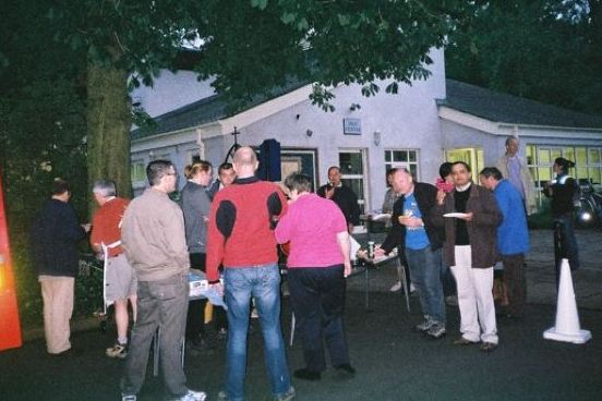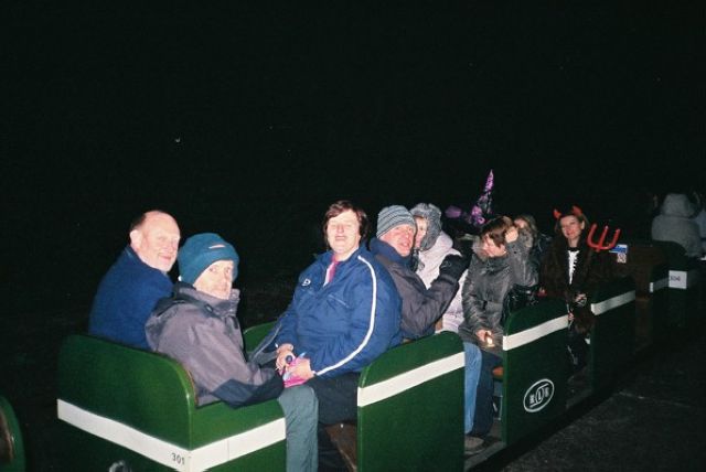 14 of us made it to the Argosy players Halloween performance of "Quarantine" at Ruislip Lido. The evening was suitably chilling but dry and perfect for the play. The train was packed as we received our briefing from the rifle-toting sentries clad in camouflage uniforms. We had to escape from the contaminated zone to reach the extraction point where the helicopter was waiting. The train line was shrouded in mist as the train made its way through the dense forests crossing barbed wire and then the remains of shot victims. We were then assaulted by the mutating figures of contaminated victims emerging from the woods who attempted to board the train to escape. After several incidents we made it back to base, where we were escorted to safety by the fearsome radio society delegation who materialised out of the mist.