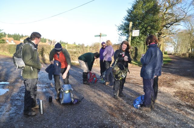 Lunch was in another churchyard, where we chanced upon the church warden who kindly opened up the church and gave some of us a tour. This was a tiny ancient church (13th century, if I remember correctly), which has a regular congregation of about 20 (I think). Very atmospheric, and popular for weddings. Sunshine kept the cold at bay (just) long enough for us to lunch.