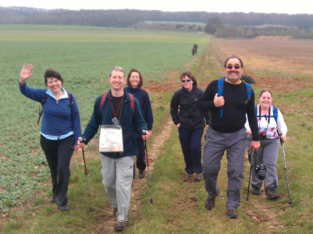 Ten of us set out on a fresh spring morning. All arrived on time, even though BST meant missing an hour in bed! We headed north out of Watlington, briefly following the Ridgeway. Then slightly eastward passing through Lewknor and on to open countryside. Dave went a little astray, but thanks to the wonders of modern technology (his whistle), we were reunited. This was perfect walking weather, warm and sunny with blue skies and a gentle breeze to cool us down.