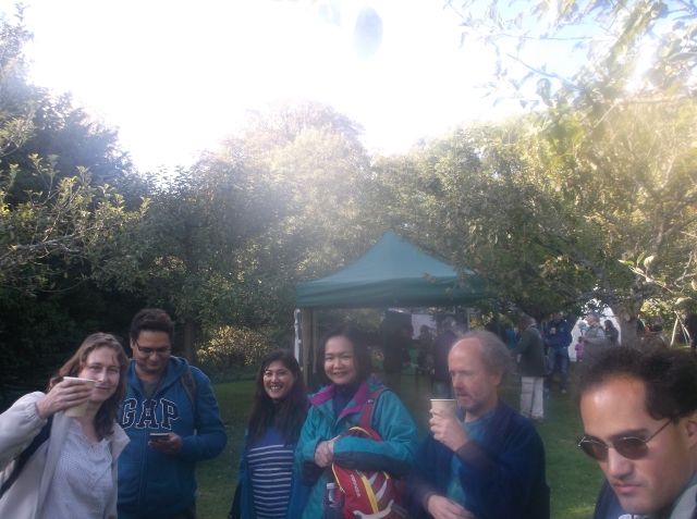 We reached Hughenden Manor where we had lunch in the very popular courtyard café. Nick and family joined us here. We visited the apple festival in the estate grounds. The gardens of the estate include orchards featuring many varieties of traditional English apples. We joined in with the apple pressing to make some excellent juice and some of us tried the mulled apple cider (rather spiffing was Jeff's verdict). Afterwards we climbed to the Disraeli monument on the hill for a stunning view over the whole valley and Wycombe in the distance. Our linear walk finished at High Wycombe for the trains back to London.