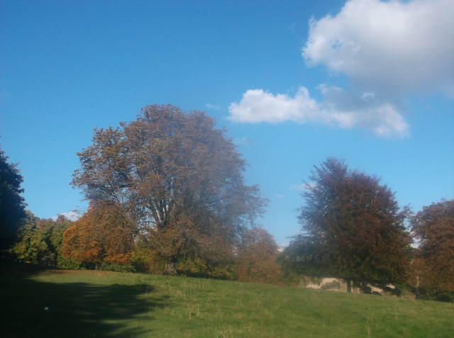 15 of us met at Saunderton on a very sunny morning. We crossed several meadows with horses in the distance before coming to the charming village of Bradenham. We visited the ex YHA building, the church and manor house. The village was the setting for the Dirty Dozen film. Peter and Frances debated the cast list as we continued southwards. The route passed through beech woods, dressed in flaming gold and red autumn colours, all resplendent in the bright sunlight. Tim indicated the other trees found on the way plus the types of mushroom seen.