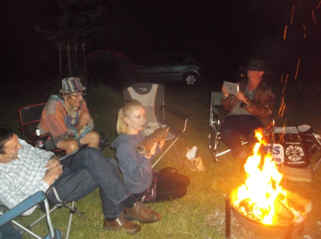Martina led the rest on a sea fishing expedition and came back with a bumper catch of mackerel. These were cooked on the campfire for a gourmet supper served with salads and pasta prepared by Renee and Rachel. Around the campfire there was an erudite debate between bibliophiles Louise and Vic regarding the works of Ayn Rand, and Nick expounded again on his metaphysical theories.