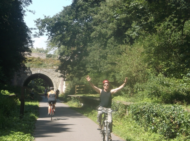Cycle ride (from Brian): Cycle ride along Monsal Trail from Blackwell Mill to Monsal Head. As day was so warm we stopped for ice creams at Millers Dale Station. Passing through 3 tunnels on the route all well lit which helped to prevent collisions as many bikers on the trail. We climbed to the excellent Hobbs Cafe high above Monsal Trail viaduct with views across the whole valley from the cafe terraced gardens. First time on off-road bike ride for Martina and also for Daniel who much enjoyed his own trailer bike.