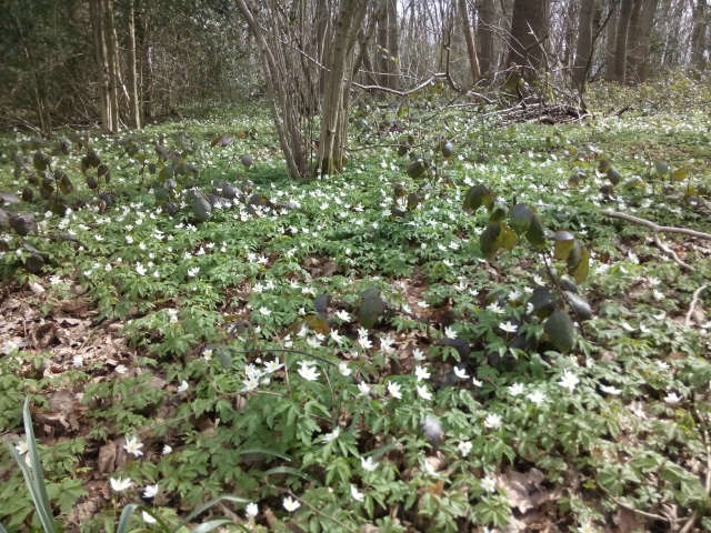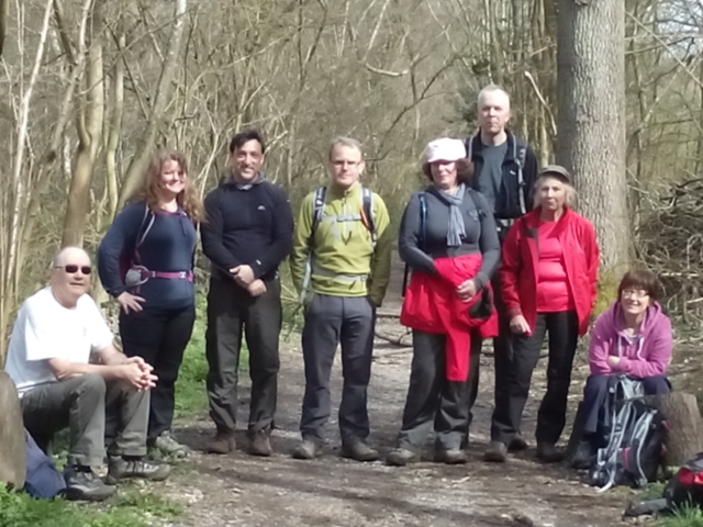 The cool morning helped as we attacked Red Hill heading north west into the woods. Onwards towards Bosmore Farm, resting briefly to take in the views. As per the forecast the sun broke through the clouds, which, along with the numerous daffodils, made us feel that spring had truly arrived. We descended through the woods towards Stonor where a number of us were nearly flattened by mountain bikers. All we heard was a loud crunching sound as they hit their brakes. Claire was ready to do battle with her walking pole! Good job they rode off at speed...