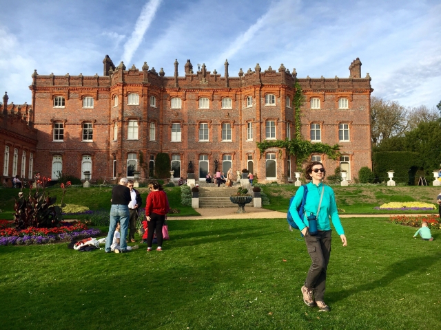 After passing several impressive manor houses, we reached the timeless village of Chiddingfold and visited the medieval church with its outstanding stained glass windows. The Crown Inn was our lunch stop beside the village green and pond. The 13th century pub is one of the finest in England with its own stained glass windows and medieval stone fireplaces. Jan found herself sitting below an oil painting of a 17th century doppelganger so posed for photos.