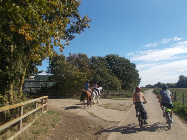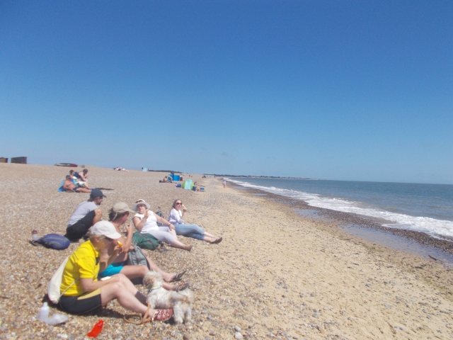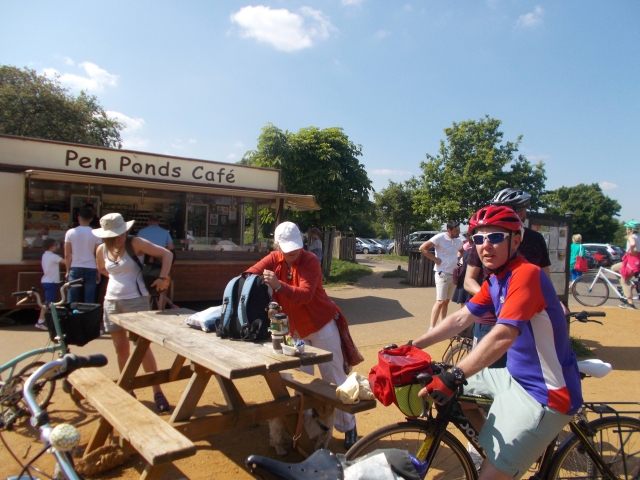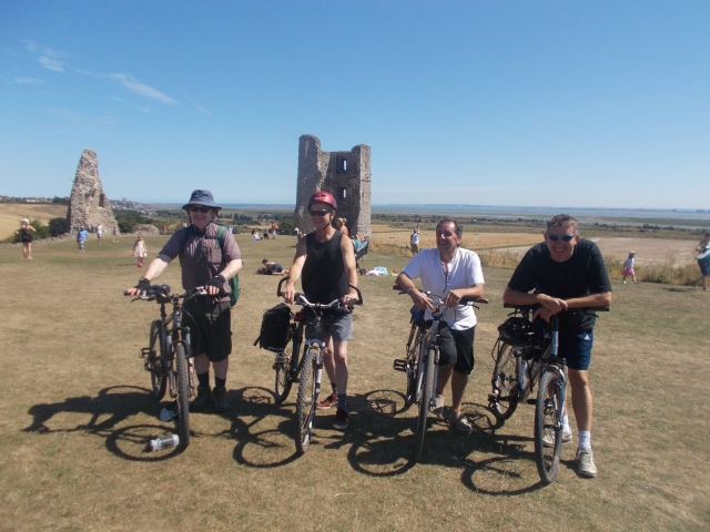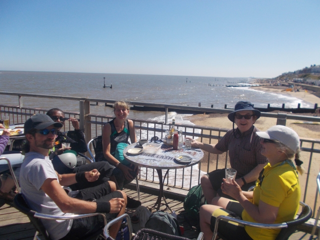 Our latest cycle event was an off-road route on another baking hot day on the coast in Essex. The C2C train (packed with seaside passengers) swept us along the coast to Hadleigh Woods. Returning cyclist Dean joined regulars Brian, Kerry and Coogee on the Olympic mountain biking course there. We managed to stay on the bikes for the majority of the tracks; fast hairpin descents and some jumps were involved. Kerry did one tumble but bounced back onto the bike before we could take photos. We had lunch at the Hadleigh Castle tea rooms, with views down to the sea and the Kent coast in the distance.