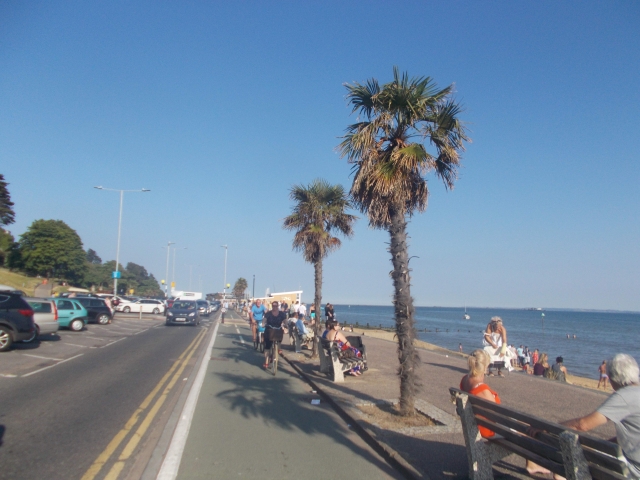 Our route was then along tracks to the beach resort of Leigh on Sea. This is one of the hidden delights of Essex. We enjoyed some cooling ice creams on the quayside, watching the Mods arrive on their Vespas and the boats drift by. Then eastwards on the cycle track on the beach promenade through Chadwell, Westcliff and finally to Southend on Sea. Every beach side café was advertising award-winning fish and chips so we gladly took advantage of this before the final expedition along the "longest pier in the world" for views across the sea on another scorchio afternoon in Essex.
