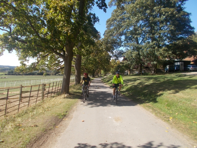 On another fine sunny autumn day Brian, Kerry, Coogee and Diane set off from Epsom town; we ascended the old village tracks up to the racecourse on the Downs. We then cycled along Stane Street (Roman Road to Chichester) now an excellent bridleway full of challenging descents and climbs. At Mickleham Downs there were several walking and cycling groups including the inevitable Duke of Edinburgh hikers. A lovely climb on the plain took us to Headley Heath and the welcome CTC café.