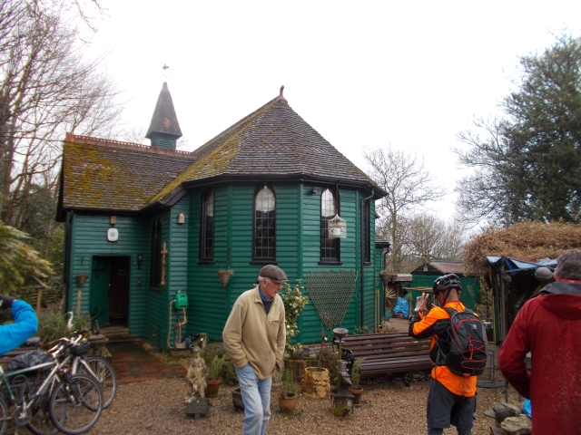 We then headed south on bridleways with a short stop at a designer conversion of a chapel (owner was happy to give us a tour with some anecdotes about his colourful past). Thence to the excellent Deers Leap mountain bike centre. This is a challenging course through the woods and meadows with several fast descents and some ramps to overcome.