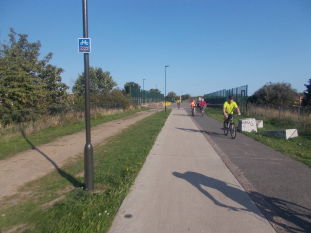 There were 3 cyclists on our ride to the sea along Route number 1. This route is a Sustrans cycle route following quiet lanes and traffic-free sections across the East of England. We passed several scenic Essex villages and lots of arable farming including a huge mountain of swedes and spuds.