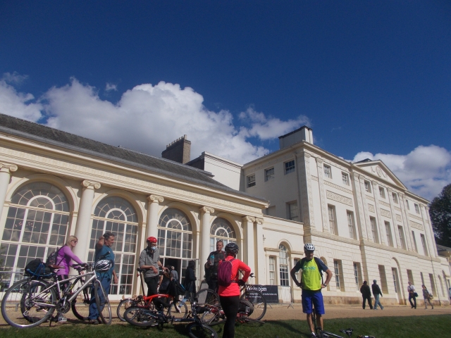 We met on a gloriously sunny summer morning at Isleworth for our second Parks and Commons Ride. New girl Dawn joined the regulars with her vintage Raleigh folding bike. Passing through Syon Park we stopped to admire the views of the Percy London House. The park was full of groups playing sports and picnickers enjoying the good weather. We took a detour to the Butts, heritage area of Brentford, where Nick Lowe's Georgian house was pointed out. We cycled past the old and new Brentford football stadia including all four pubs at each corner of the old stadium. We took a break at Chiswick House, with welcoming ice creams from a vintage Morris vehicle on the lawn in front of Lord Burlington's Palladian Palace. Our route then followed the Thames Path through Hammersmith and Fulham before our lunch stop at Fulham Palace Gardens. Coogee offered round the gob stoppers once more as we enjoyed the Thameside views.