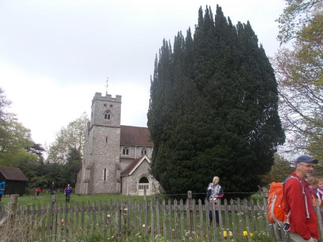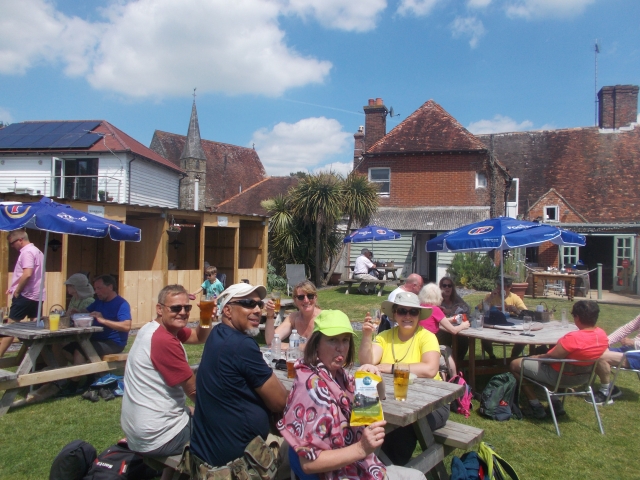 Crossing the Thames at Temple Lock we explored the timeless hamlet of Hurley with its medieval church, tithe barn and manors. Lunch was at the Olde Bell Inn which was founded for pilgrims in the 12th century. In the beer garden we were joined by a large wedding party just married at the village church. Our route back to Marlow was along the Thames Path with lots of rowers out on this fine afternoon by the river.