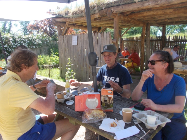 Next, it was up the lanes and across the farmers field to the 'Tea Shack' at Wood Oaks farm which everyone agreed was 'a little jewel', and a micro brewery to boot (Julie and Pankja partook). Paninis and coffees and a 12-inch hotdog for Mick. We retraced our steps back to the canal and over the bridge to the fields and woods above and a view back over the reed bed. Back to the start where some went on their way and five of us had a well earned beverage at the Coy Carp. Everyone enjoyed the lovely weather, routes and scenery.