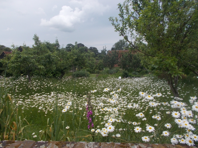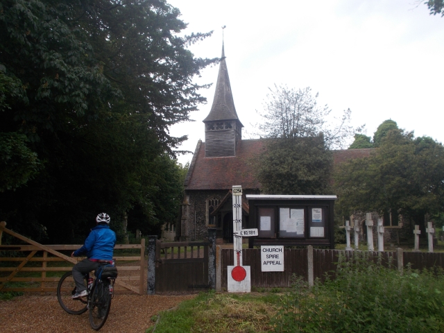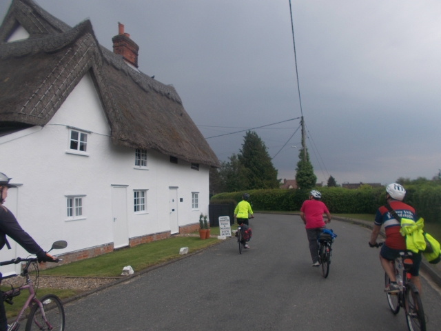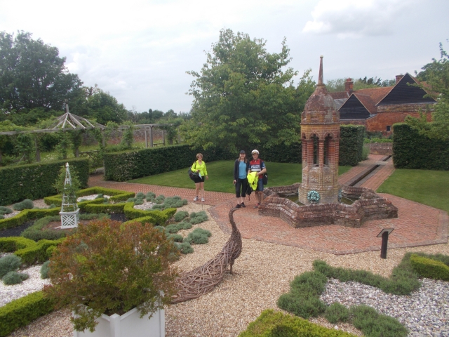 We then headed towards East Bergholt, passing many rowing boats gliding by as the afternoon heated up. East Bergholt is another charming village, thatched cottages painted in Suffolk salmon pink with Constable's studio now a museum. The medieval church has a unique feature, the bell cage, built in 1531 as a temporary expediency and still in use today. Our route descended to Flatford Mill with the classic setting for Constable's "Hay Wain". As the afternoon was now sunny and fine, we finished with coffee and cakes at the mill tea gardens watching the boats glide by at this timeless setting.