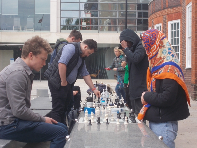 After lunch at pavement cafes at Clerkenwell Green we strolled through the medieval areas of St Johns Priory and St Barts. Managed to get a tour of the imposing Norman church, featured in many films and programmes. A chess club was playing multiple games outdoors in the courtyard of the St Johns Priory. We crossed Fleet Street and then St Brides before the Fleet entered the Thames by Blackfriars. The walk ended with welcome hot and cold drinks at the outdoor market cafes by Gabriel's Wharf.