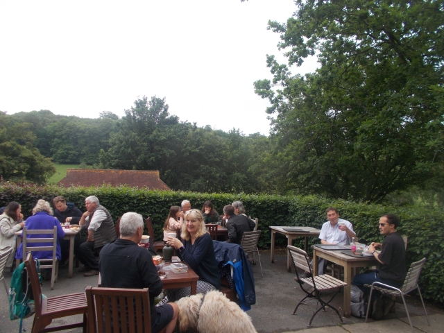 Henley riverside was full of cycle groups and hikers at the cafe terrace enjoying pre-excursion refreshments as the boats sailed by. Our route was a loop around the villages and hills surrounding Henley. The bridleways and quiet lanes were perfect for off-road riding. Carpets of bluebells were seen in the woods alongside. At Highmoor we found the Rising Sun, with lots of space in the large garden. Table grabbed, we enjoyed an unexpected pub lunch with welcome table service.
