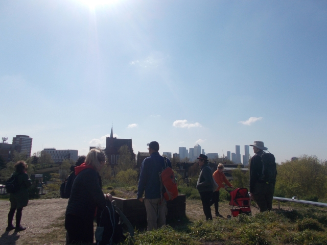 On Saturday morning we were met with glorious sunshine outside Preston Road Station. The number of walkers attending this walk was getting larger by the minute, 17 at last count. We set off at 11:15, bushy tailed and lots of conversation to be heard, and made our way to Barn Hill, which was called Bardon Hill in 1547 and was landscaped by Humphrey Repton in 1792. The hay meadows are the remnants of two manor houses originally owned by King Edward the Confessor. Heading up this hill towards the pond at the top, Michael L and I wondered how this pond was there given the water table (I used to fish there in my youth as I lived on Fryent Way). We arrived at the pond and gathered around the trig point which has excellent views of Wembley Stadium and the Shard in the distance plus the Walkie-Talkie (which reminds me of Sponge Bob square pants, don't ask). We then headed down to Fryent Way, passing a strip of land that once had a row of prefab houses (Pankaj cracked a joke about sprouts to much amusement) on it built after WW2, one of which was occupied by none other than Charlie Watts of the Rolling Stones. We crossed over Fryent Way and headed up to the viewpoint with its exceptional views (big sky). I remember that there used to be a WW2 look-out post / concrete bunker there, now filled in and levelled off. Now onwards towards the Welsh Harp. Inevitably there were a few roads to negotiate but we were rewarded with sight of the magnificent St Andrew's Church (built 1847) which was a church in search of a congregation having originally been located in central London near Oxford Street but due to a change in the demographic in that area had few patrons and was carefully dismantled and re-erected at its new site in 1934 ready for the new estates of houses being built (Metroland).