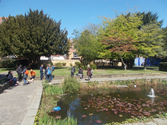 A full quota of walkers, new as well as old faces, met at Osterley Station on a Sunday spring morning with some bright sunshine but also a fairly cutting easterly wind. We firstly walked to the Osterley Bookshop around the corner which is a captivating place of character (in which some of us could have spent far more time) before proceeding to Osterley House where it was a popular decision to have an early coffee. We then set off in the Southall direction crossing the M4 and passing through Norwood Green and past Fuller's oldest pub, the Plough, before stopping to view the magnificent Gurdwara Sri Singh Sabha Sikh temple in Southall. Several of the group entered the temple and were treated with great hospitality. The official lunch stop was at Southall Manor Grounds, Southall's oldest building where there was a good selection of ethnic food on sale within easy reach. The sunken pond and surrounding seating was an ideal location for a break.