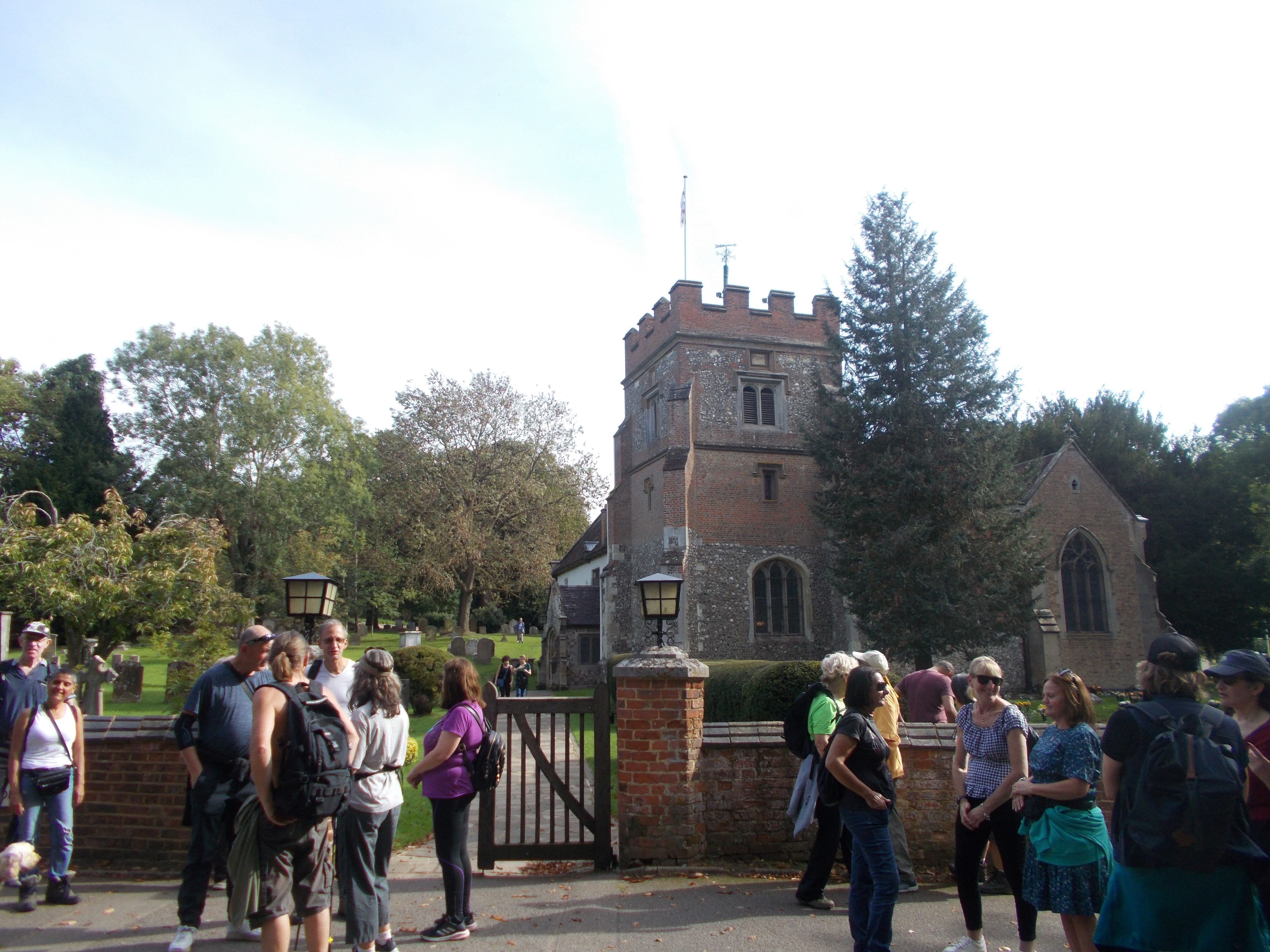 Thirteen met at Princes Risborough for the steam railway walk. The station is shared between Chiltern mainline and Chinnor Railway so ideal for connections. As the whistles blew, we climbed aboard the heritage carriages for the scenic journey passing the Chiltern hamlets and cricket pitch on the way. At Chinnor we alighted from the steam train and walked to join the Ridgeway National Trail. On such a clear day there were great views of the Oxfordshire Plain below. We reached the sleepy village of Bledlow with its thatched cottages and the Carrington Manor. We toured the famous Lyde Gardens before a leisurely lunch at the Lions pub (good value Sunday roasts). The pub front garden was busy with walkers, cyclists and passing horse riders, with the sounds and views of the steam trains passing back and forth just below us. Con and Mark P entertained the locals with their tall tales around the fireplace. We then climbed along the Icknield Way footpath to reach the village of Horsenden with an impressive 14th century church. After walking alongside a ramblers group we were soon back at Princes Risborough where the steam train was arriving for the last run of the day.