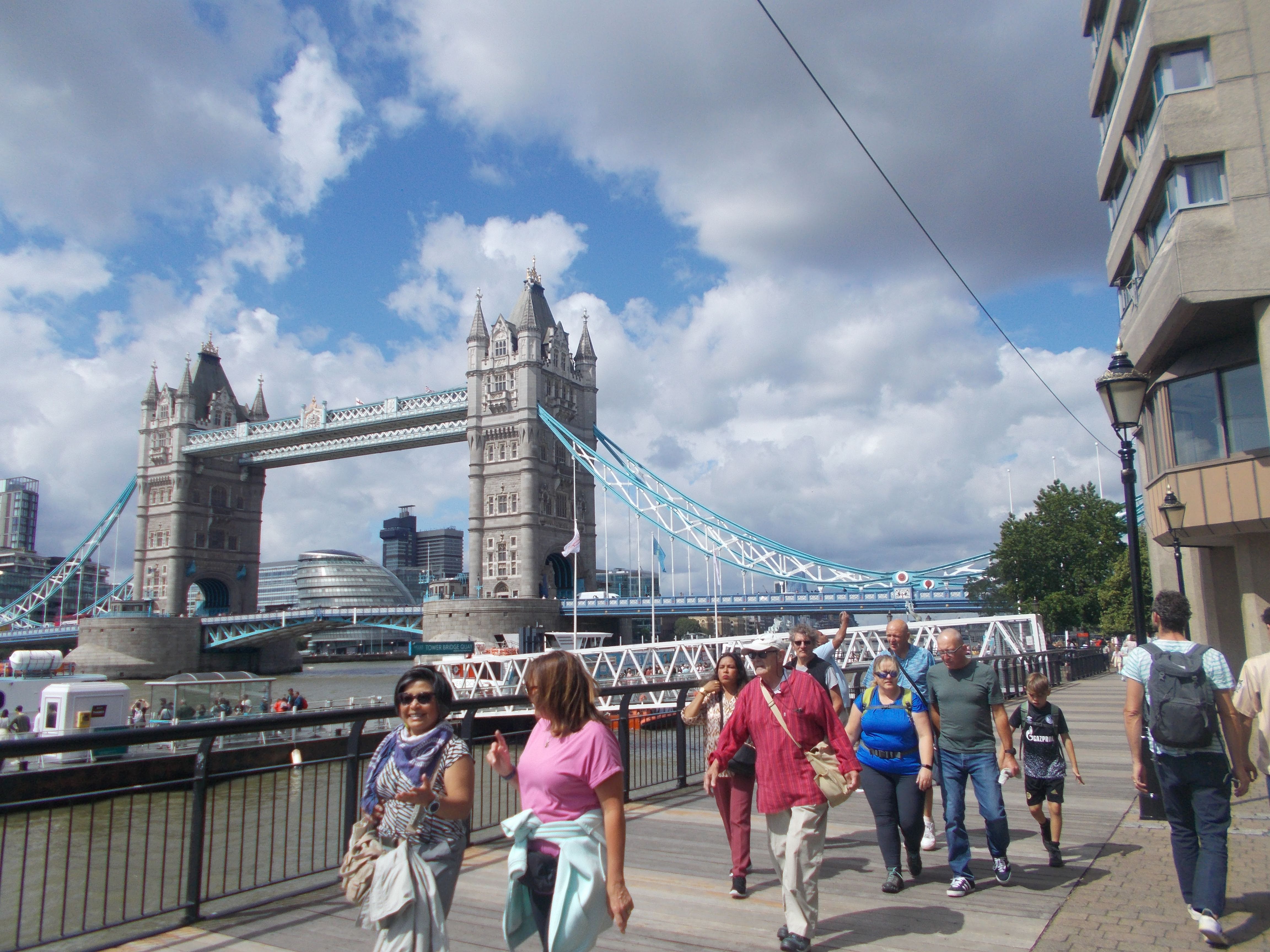 Our hearts sank when we saw the messy rain pour down on Saturday morning. Who hadn't remembered to do a sun dance? The weather app was not giving any good news either. Then hey, we remembered that there's no such thing as bad weather, only wrong clothes. So off we headed for Westminster where we started our lovely walk covered almost head to toe in plastic. We were delighted to be joined by some lovely members who were very positive and looking forward to walking with us over the fabulously historic 8 London bridges. The rain abated eventually and with the beautiful views all around us we started off at Westminster Bridge. Lots of discussions on the building scenery old and new while we took in Hungerford or Golden Jubilee Bridge, Waterloo Bridge, Blackfriars Bridge, Millennium Bridge, Southwark Bridge, London Bridge and finally Tower Bridge. We visited the Globe Theatre, had coffee at the National Theatre, and looked around the metal artwork and Christmas stalls on the embankment. We even went down to walk on the "beach". Lots of photo opportunities on this walk. Eventually we passed the Tower of London on our way to the historic Liberty Bounds pub where we all enjoyed some well-earned food.