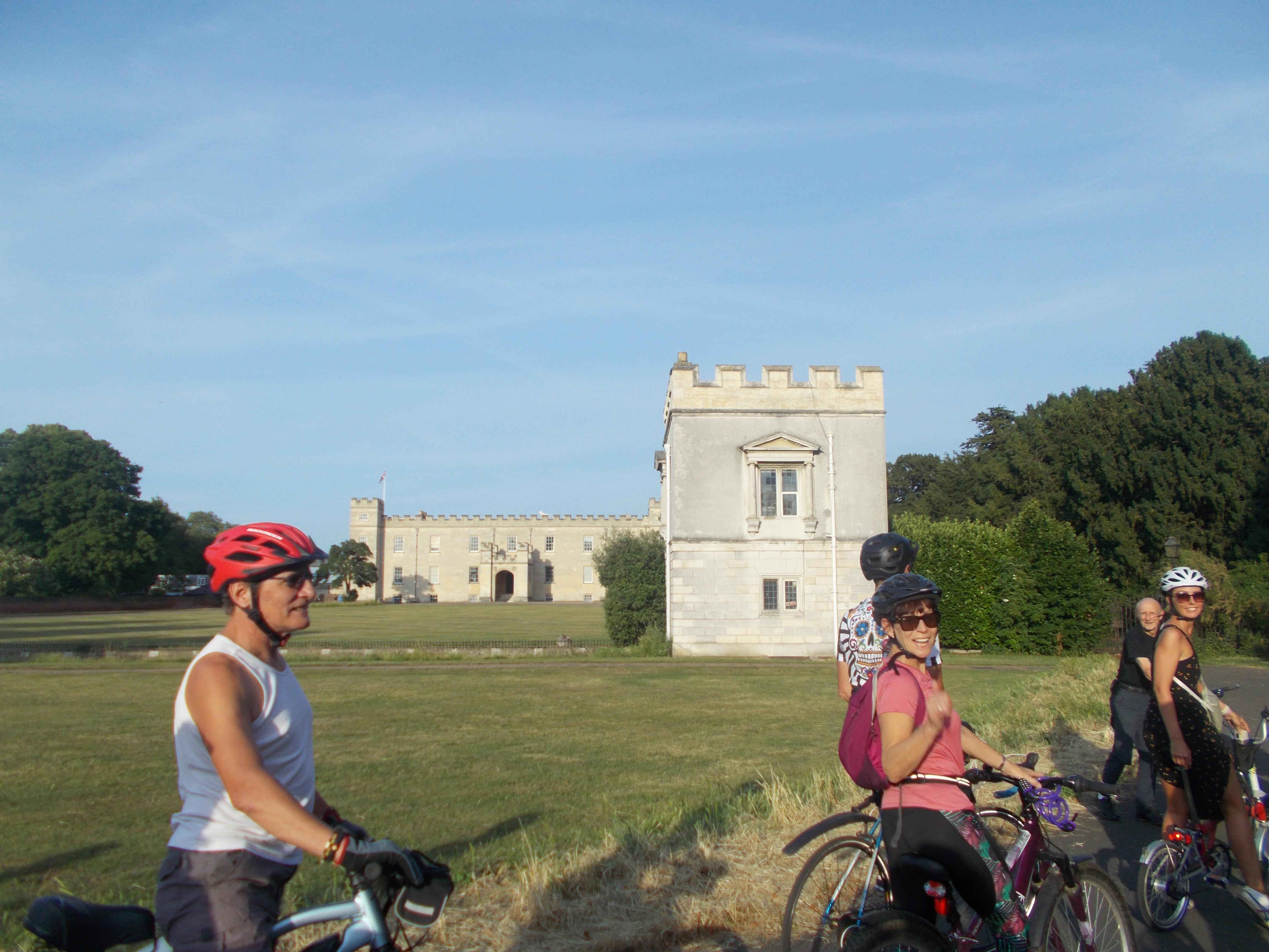 Five eager cyclists met at the Rusty Bike Café for coffee and cheese toasties. Our ride was an easy 20-mile ride from Uxbridge to Burnham via Eton. We followed Sustrans route 61 via the Grand Union Canal and tracks through Langley. En route we passed several pillboxes and aqueducts on the Slough arm and some herons gliding by on the water. We crossed the Jubilee River via the timber footbridge and entered Eton College playing fields. We explored the charming riverside town and then joined Sustrans route 4 west. Our next stop was Boveney village to visit the 12th century church and medieval manor. Detour around the Eton College rowing lake as riverside entrance closed. Then to Dorney Court, with its manorial buildings and church, often used as a film location. Then late lunch at the Pineapple, ginormous sandwiches for all and a fitting end to the ride.