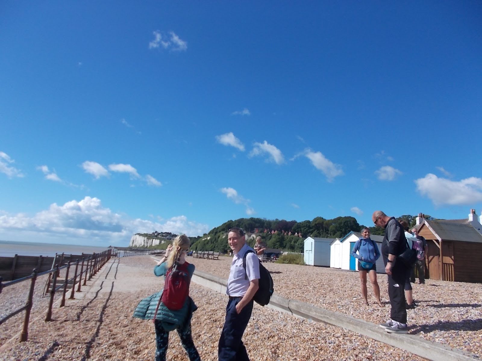 Our coastal walk was the famous Seven Sisters walk, one of the finest coastal walks in England. Five eager hikers alighted at Eastbourne's very impressive station (late Victorian French Renaissance style). Scenic bus ride to start of the walk, Seven Sisters County Park. The crowds were noticeable from there on as this is one of the most popular walks. Our climb started by the shingle beach to the summit of the first "sister". From this cliff top we could see the entire coast west and east as far as Belle Tout Lighthouse. We climbed and descended each hill, pausing on each summit to work out how many more sisters were ahead.