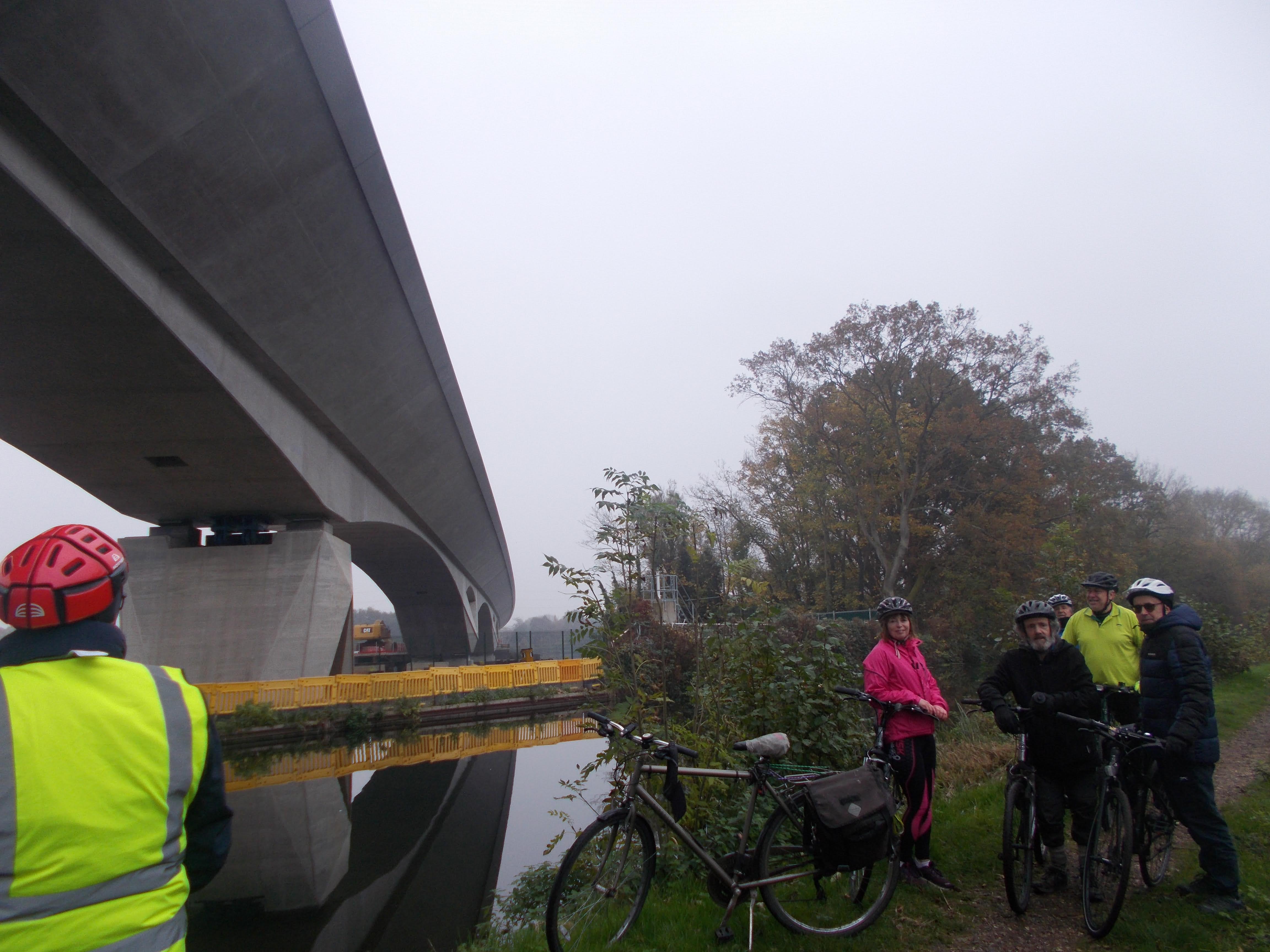 Nine cyclists met at Uxbridge for our Armistice Day Cycle Ride. We relocated to the market square as Rusty Bike Café staff AWOL. The delay allowed us to witness the marching troops and the two-minute silence at the war memorial. We then set off on the Grand Union Canal passing some diverse DIY vessels. We reached the majestic HS2 Colne Valley viaduct which soars above the canal. "Brunel would have been proud" announced Lisa. Then through Denham to explore the converted Denham Film Studios. The art deco facade and the original apartments remain within the new development. It was the studio where, among many others, the technicolour wonders of Powell Pressburger were created.