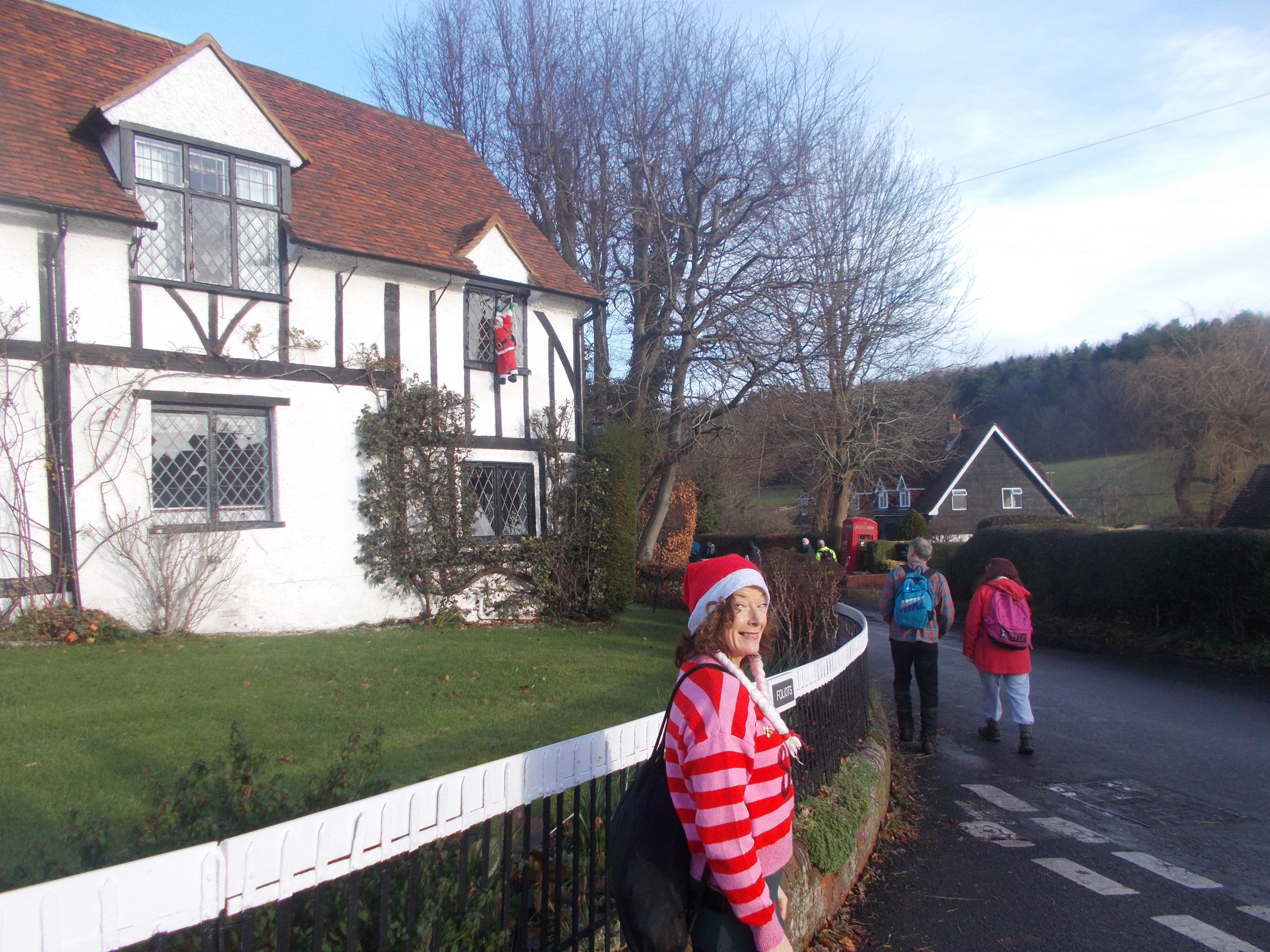 Saturday saw ten of us jump on the fast train to Winchester for a very festive walk with Christmas market in this fascinating ancient city. The sun shone on the righteous as we headed to the Great Hall, the heart of the Saxon capital of England. The majestic building was decorated with Christmas trees and guarded by toy soldiers, with the stewards dressed up as elves. "Gosh", said Con, "where can I get that outfit?". Brian led the historic trail around the city walls. There are still medieval gateways within the surviving sections. The Kings Gate has a unique 14th century church above it which we explored. On to Winchester College with its wealth of Gothic architecture, it is third oldest public school in England. Judith explained that students are called Wykehamists after the founder. We took in the remains of the abbey and Winchester Castle before climbing St Giles Hill for panoramic views over the entire city.
