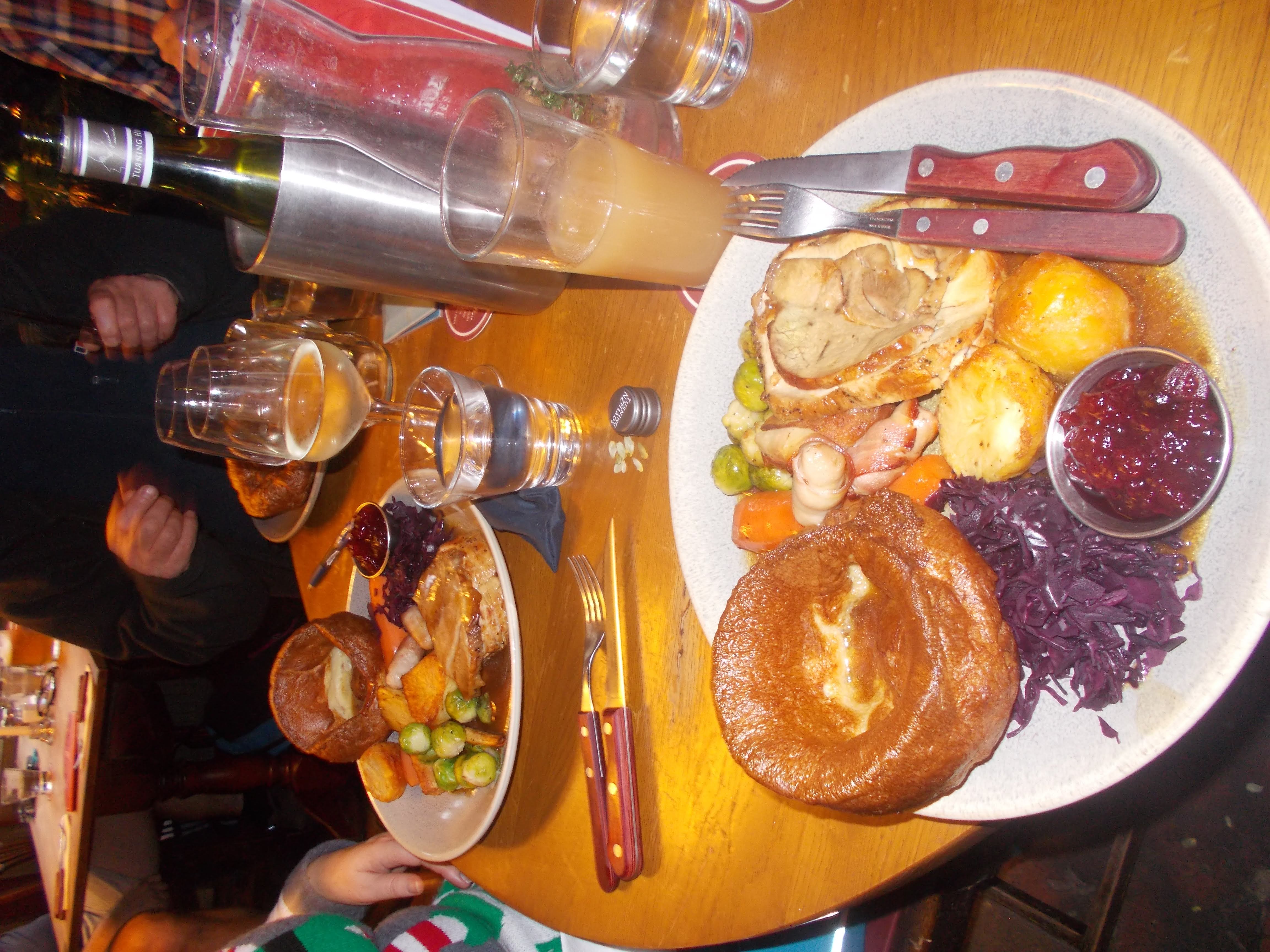 We stopped for lunch at the Bishop on the Bridge inn, next to the Old Mill. Then to the outstanding early gothic Winchester Cathedral founded in the age of Alfred. Just in the nick we arrived for the Dean to conduct a prayer service in the highly decorated Lady Chapel before we listened to the cathedral choir begin their service. Departing, we found dusk had arrived and the whole cathedral courtyard was lit up with candles and festive lights, the aroma of mulled wine and cinnamon drifting in the air. By a crafty ruse we discovered a queue-free entrance to the Christmas market which takes up in the entire inner courtyard and cloisters of the cathedral. The German-themed market is packed with stalls and was very busy with happy shoppers. Jeff discovered the best food sampling stalls. "I say, they're awfully nice" he said, before moving to the next stall. We warmed ourselves with the mulled wine and the German sausages before Con led us to the "historic Wetherspoons" (founded by Alfred the Great, he claimed) for local ales after a rather splendid day in ancient Winchester.