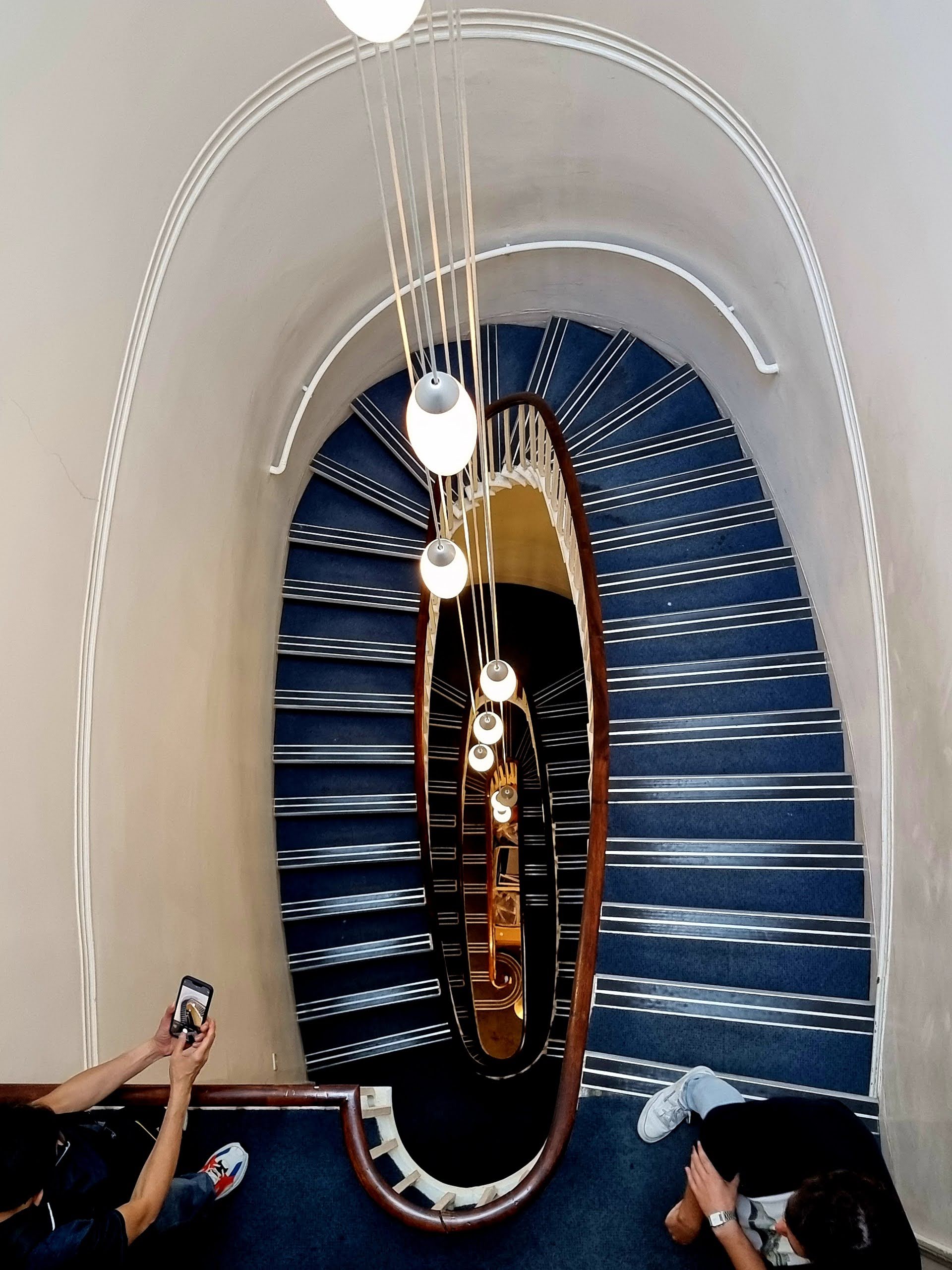 This year's annual Open House London event was on another gloriously sunny day of this Indian Summer. Twenty-four of us did the tour from Farringdon to Kings Cross, visiting a record eight venues. Open House London is the annual festival of heritage and architecture where many private buildings open their doors to the public. It was Jam Doughnut Time at Paul's tea rooms; "they're awfully nice", said Carole, scoffing her second one. We entered the Founders Hall next to St Bartholomew's Church. This is the livery company connected with a bell foundry and we were able to ring out the bells and dress up in the company ceremonial robes. Then to St Johns Gate and the hidden herb garden of the St Johns Order. Then to Clerkenwell for a tour of a unique private house with a retractable glazed roof; "It's just like Tracy Island" said Rob as we looked around for Scott. Our walk took us through Gray's Inn and into Lincolns Inn. We entered a 17th century Palladian mansion (now a legal chambers) where the chief barrister guided us with lots of anecdotes on the historical characters who dwelled there. The most striking feature was the elliptical staircase created by Sir John Soane which appears to float in the air.