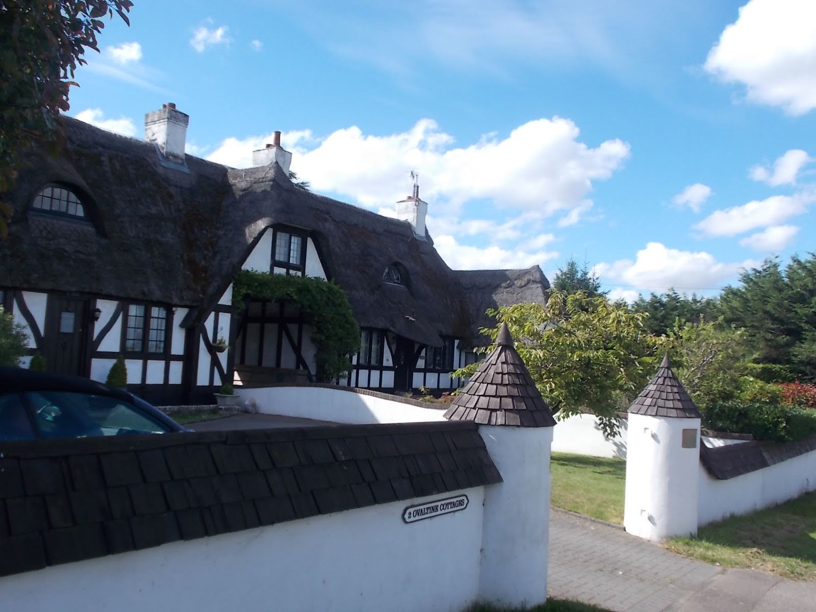 Next leg was the walk from Moor Park Station through the very exclusive Moor Park estate. The vast mansions were all unique. Quite a few originally were Arts and Crafts style. No walkers, however quite a few Bentleys and Ferraris were passed on route. From Batchworth Heath we crossed the famous Moor Park golf course with the 17th century Palladian palace at the centre. We chatted to some golfers at the carved tree. One had copied Sir John's air shot at the Mansion. We then descended to Rickmansworth old town. For perhaps the first time in history we managed two Wetherspoons in one walk. Over lunch Rob and new Peter recounted some amusing yarns before we set out for the last leg from Amersham.