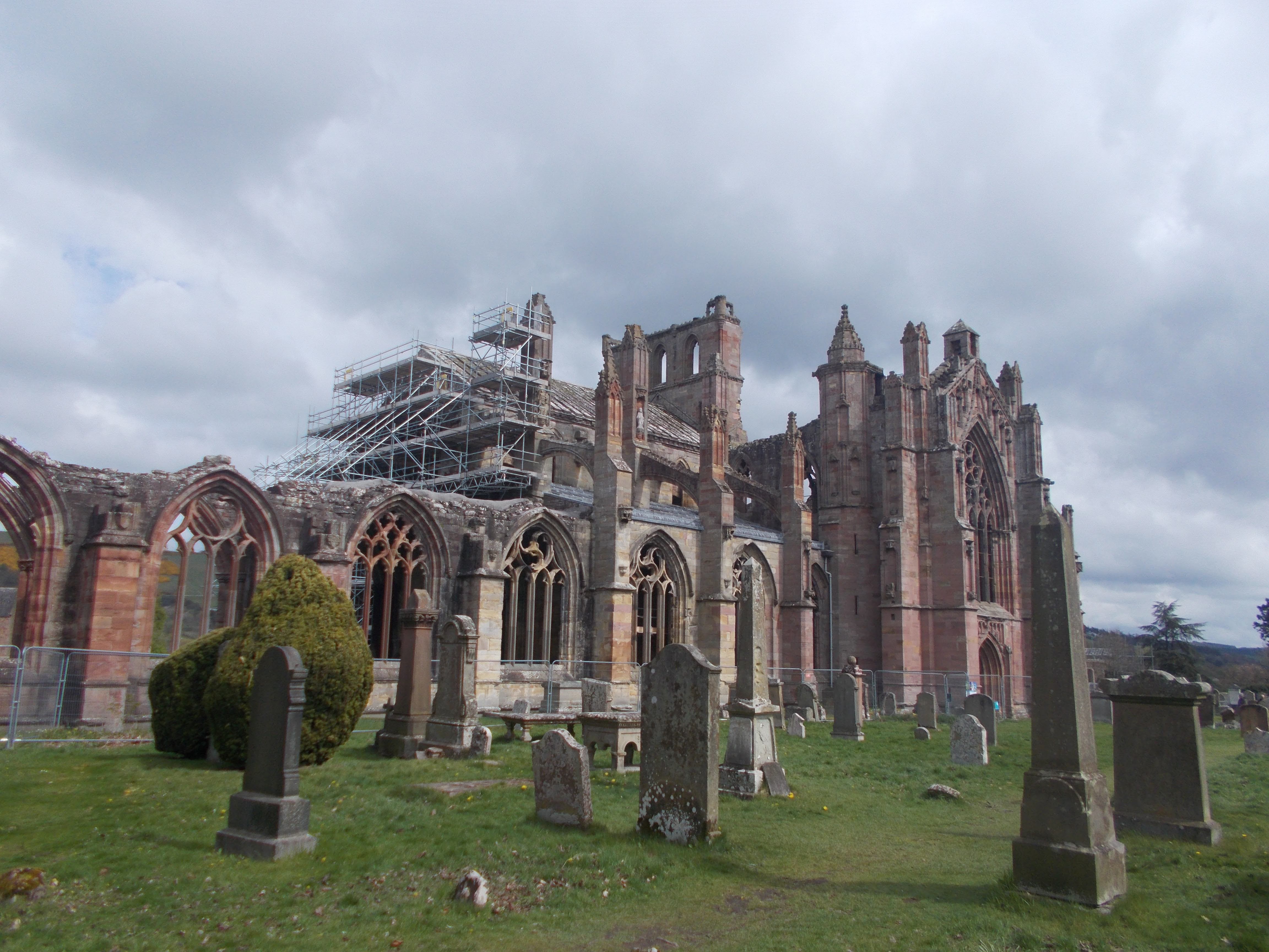 Saturday saw Mike and Cathy cook a full Scottish breakfast for all; "I say, rather spiffing" said Judith, tucking in. We caught the Borders Railway (rebuilt in 2015) to the Borders region. At Tweedbank we began the walk along the very scenic River Tweed. A favourite for salmon fishing, the Tweed is surrounded by gorse-covered hills, and flows swiftly eastwards. At Melrose we caught a concert rehearsal at the parish kirk and walked through an apple blossom orchard to the Melrose Abbey, the finest in Scotland. Created by David I in the 12th century the Abbey has unique sculptures in the red sandstone nave including a pig playing a medieval bagpipe. After lunch at the courtyard tea rooms, we took the free shuttle (very friendly driver and guide) to visit the impressive gardens of the Scots Baronial-style Abbotsford House, the home of Sir Walter Scott. Back at Tweedbank Station serendipity arrived with free food profferred by the closing station kiosk. Louise and Kevin first to leap forwards for offerings, we enjoyed the scenic train ride back with a surprise picnic. Some changed at Waverley for a train ride across the famous Forth Rail Bridge (featured in 39 Steps film versions). The evening meal was at the Old Bell where Brian introduced Charlie and Sue to the group. The couple, former members from Ealing, moved to Edinburgh some years back and love the more relaxed life. Back at the hostel a mystery benefactor "gifted" us hot cross buns, which Joan cooked for all the party. "Oh Goody" said Anne, grabbing the first one.