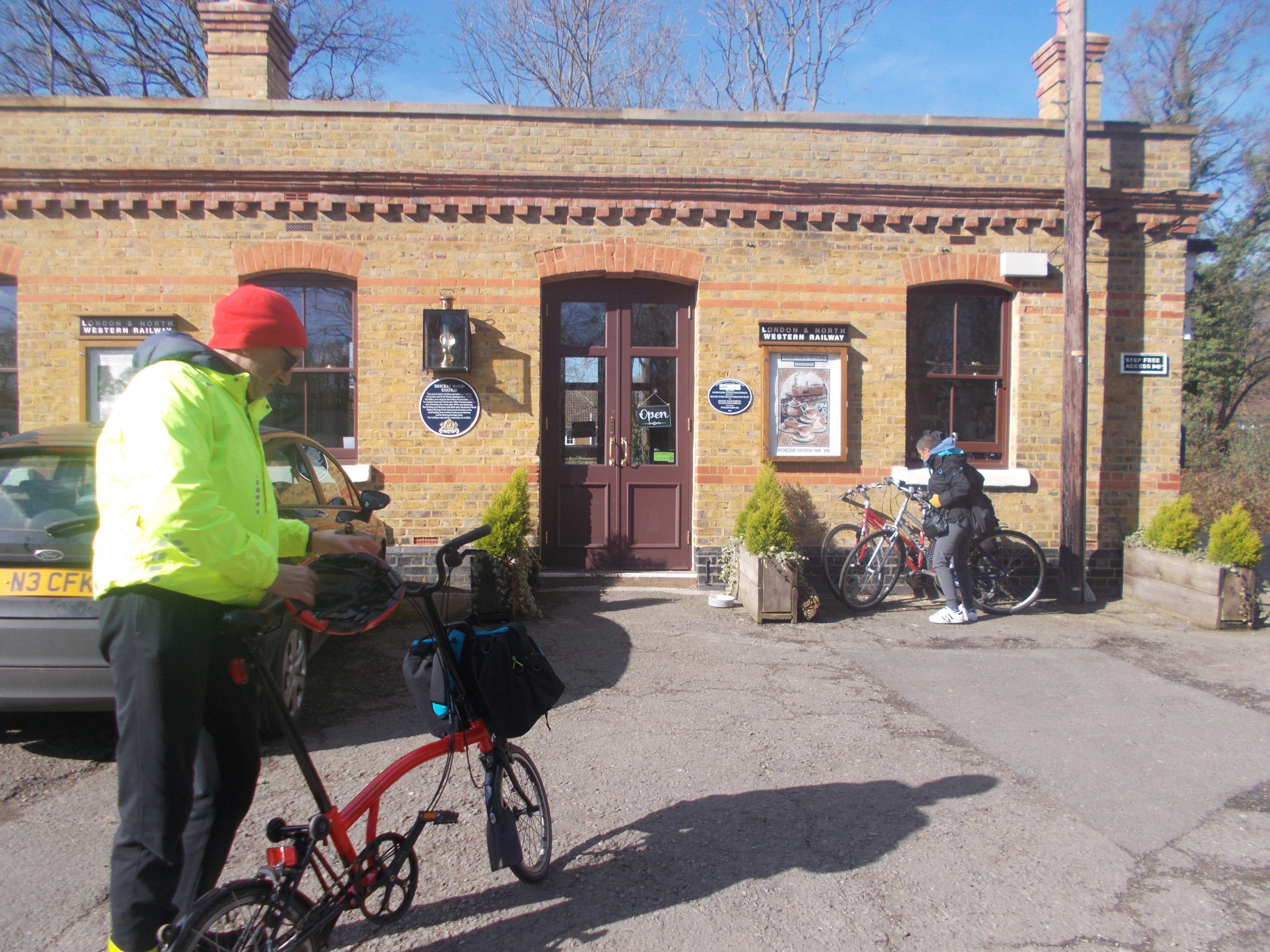 On a bright cold morning we met at the Aquadrome café. Some had taken part in the Aquadrome parkrun earlier in the morning with anniversary cake handed out. After more jam doughnuts ("By Golly they're good" said Soraya), we set off. We cycled on route 6/61, perfect as traffic-free along the Ebury Way and the Watford - St Albans cycle way. Lots of skateboarders, BMX riders and scooter riders were whizzing around the purpose-made Oxhey Activity Park.