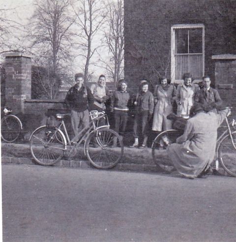 Derek Bonner, Kath Sterne, Joyce Slade, Mary O'Donovan, Marian Ward, Suzanne Woodard, John Slade and John Butler (mending bike)