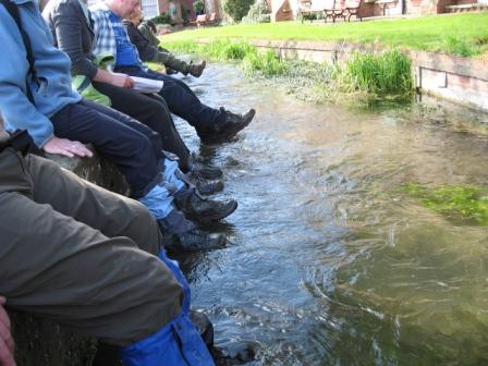 The morning route evenutally saw us leave the residential area of Amersham and soon we were in typical Chiltern countryside, skirting alongside a golf course and eventually joining the South Bucks Way. We arrived just before 1pm in Chalfont St Giles having completed over half the route. The afternoon walk saw us return by some farmland and mostly downhill to Amersham Old Town by about 3.30 pm. Brian found us a nice stream to wash our boots in and 8 of us went for tea with the remainder of the group doing the final climb to make their way back to Amersham Station.